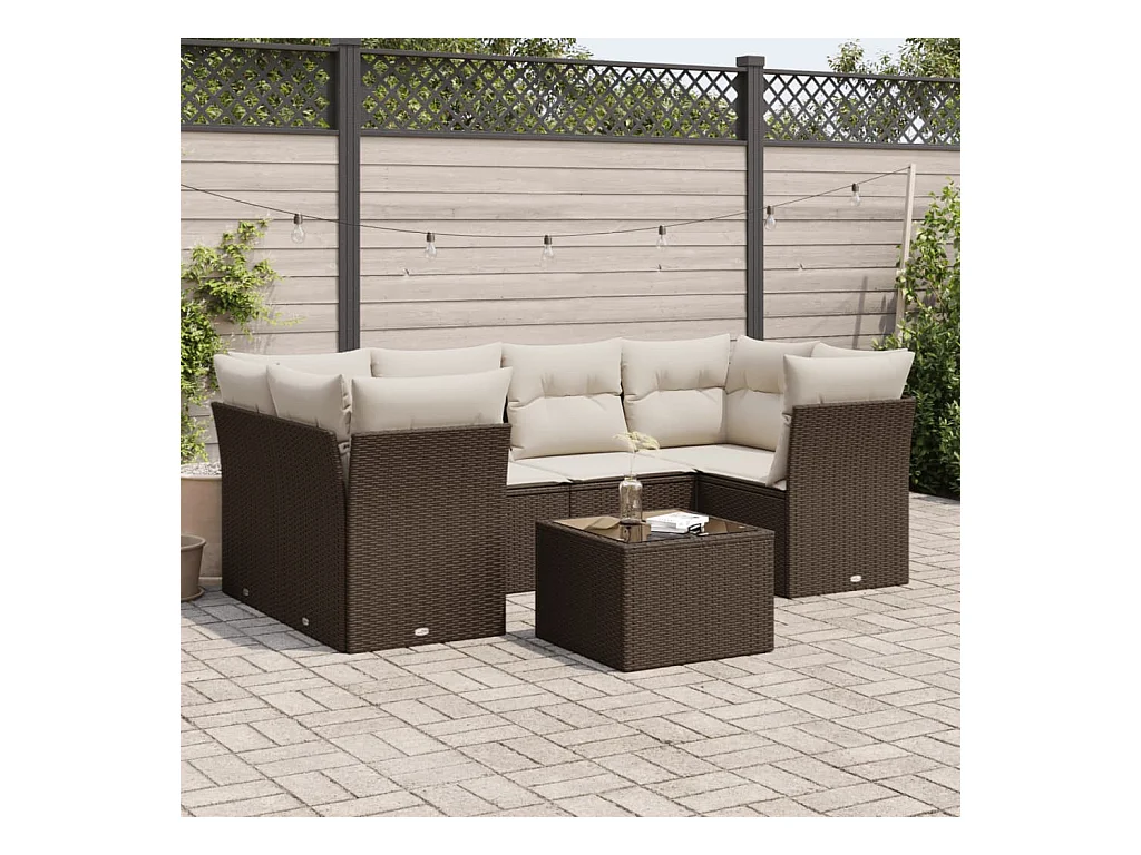 Salon de jardin avec coussins 7 pcs marron résine tressée