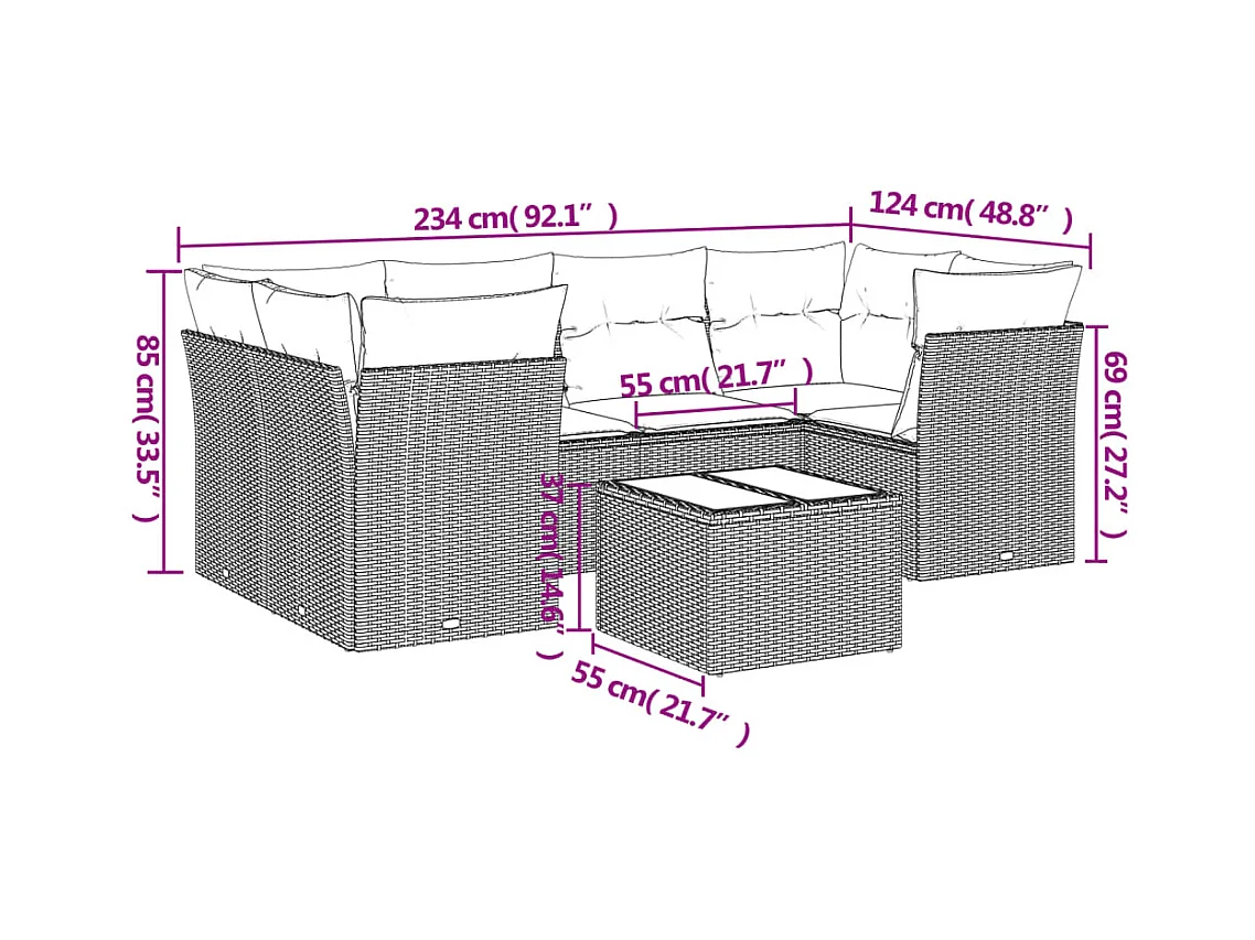 Salon de jardin avec coussins 6 pcs marron résine tressée