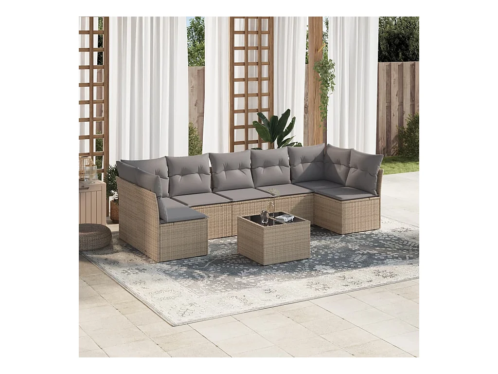 Salon de jardin avec coussins 8 pcs beige résine tressée