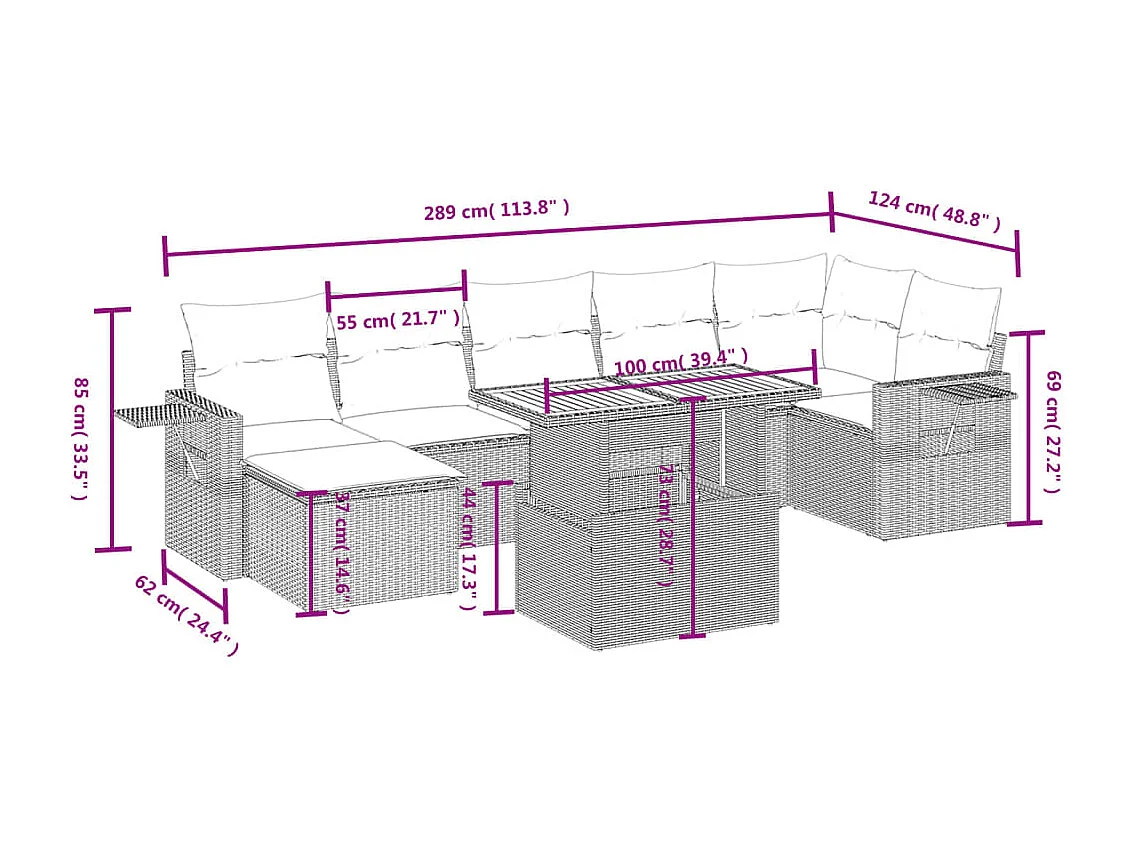 Salon de jardin avec coussins 7 pcs beige résine tressée