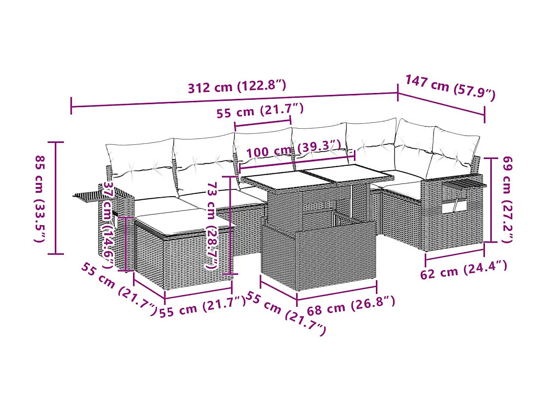 Salon complet de jardin Canapé 2 places et 2 fauteuils