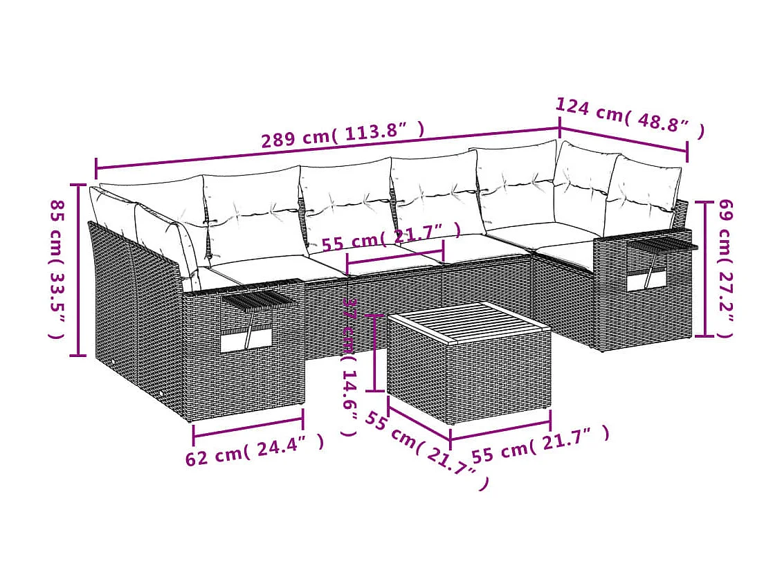 Salon de jardin avec coussins 8 pcs beige résine tressée