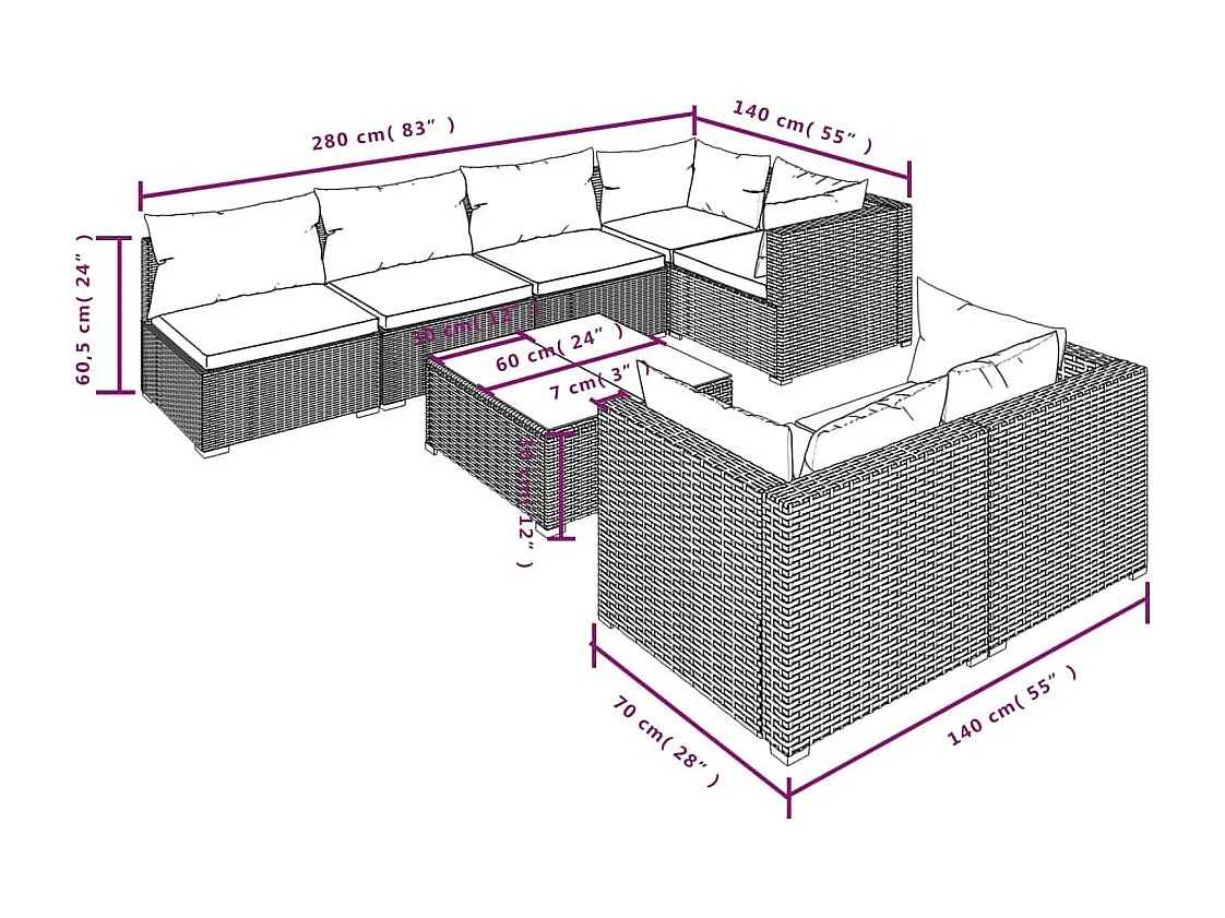 Salon de jardin avec coussins 8 pcs marron résine tressée