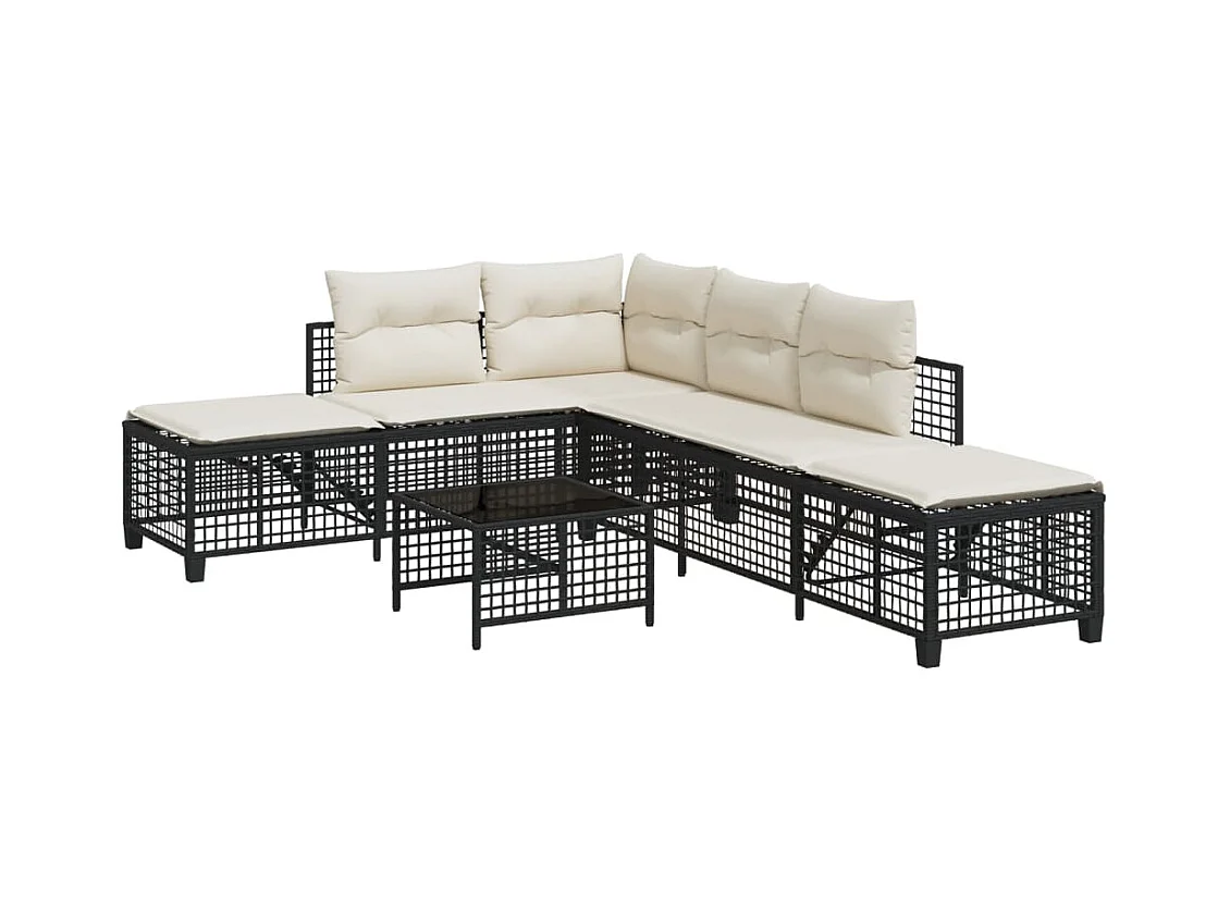 Salon de jardin d'angle 3 pcs avec coussins noir résine tressée