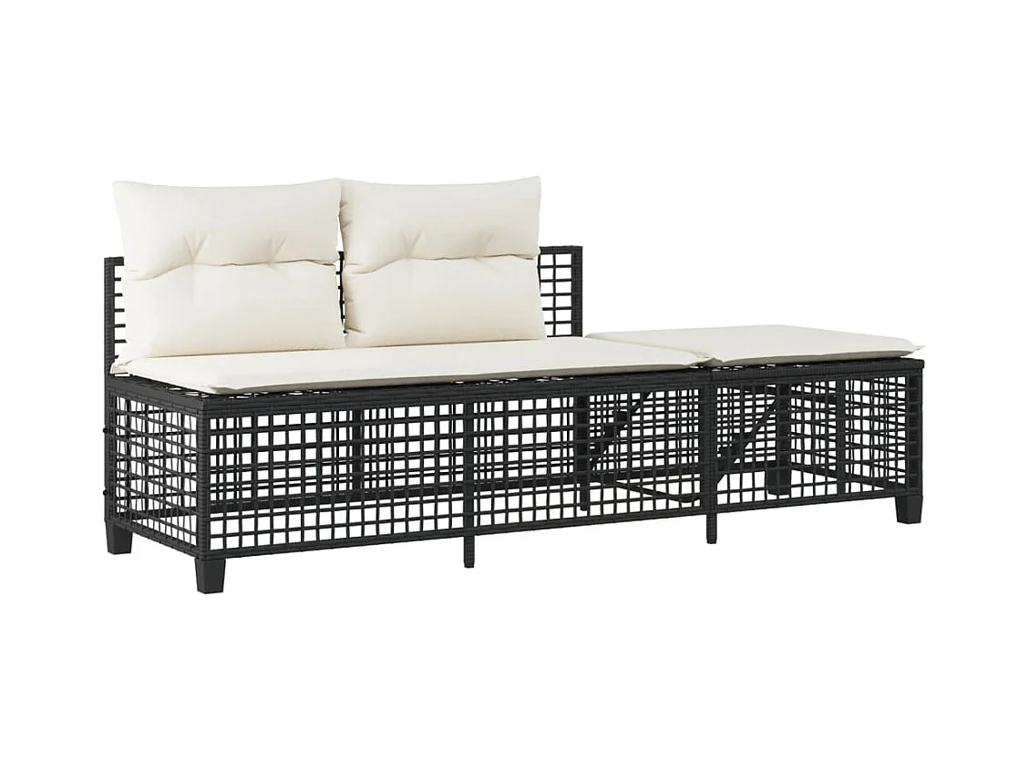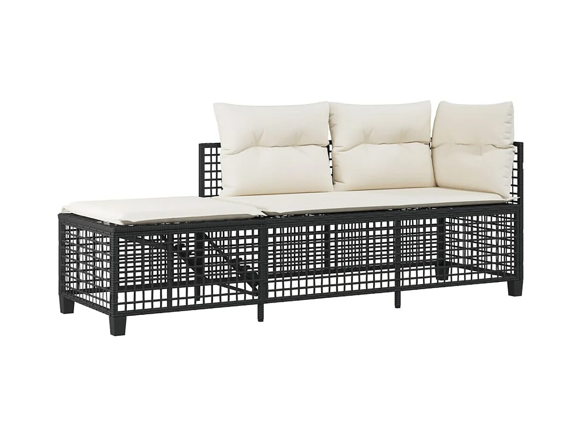 Salon de jardin 3 pcs avec coussins noir résine tressée