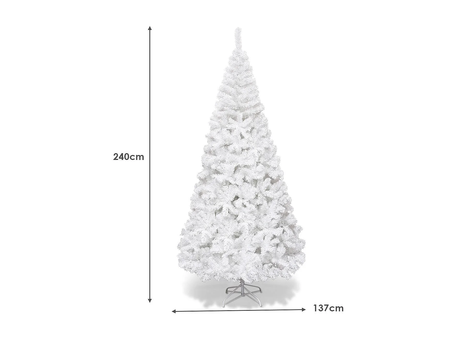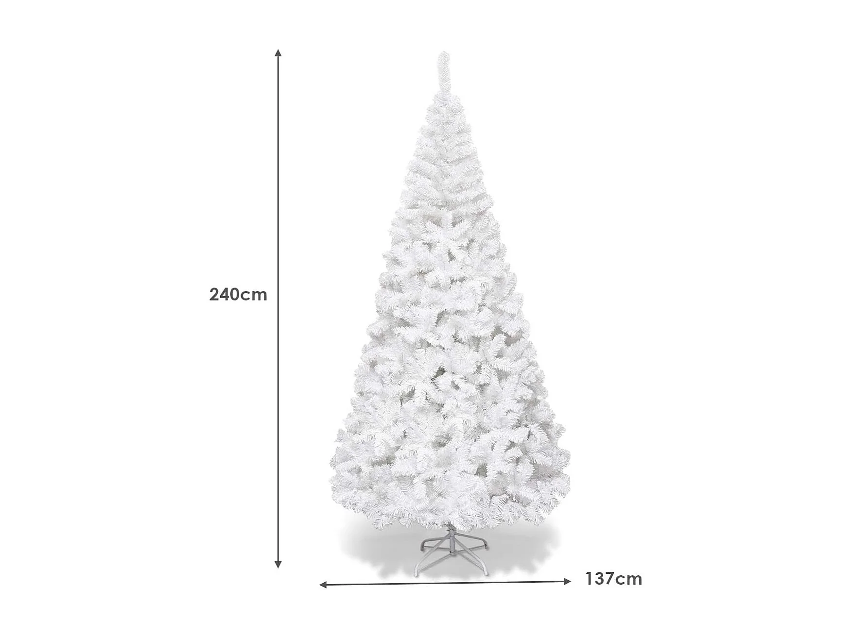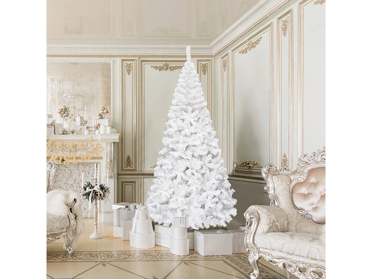 Sapin de Noël Artificiel 240cm pour Décoration de Noël 1138 branches, Matériau PVC avec Pied en Métal, Blanc