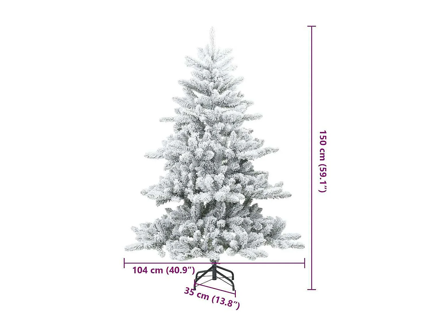 Sapin de Noël artificiel à charnières avec neige floquée 150 cm