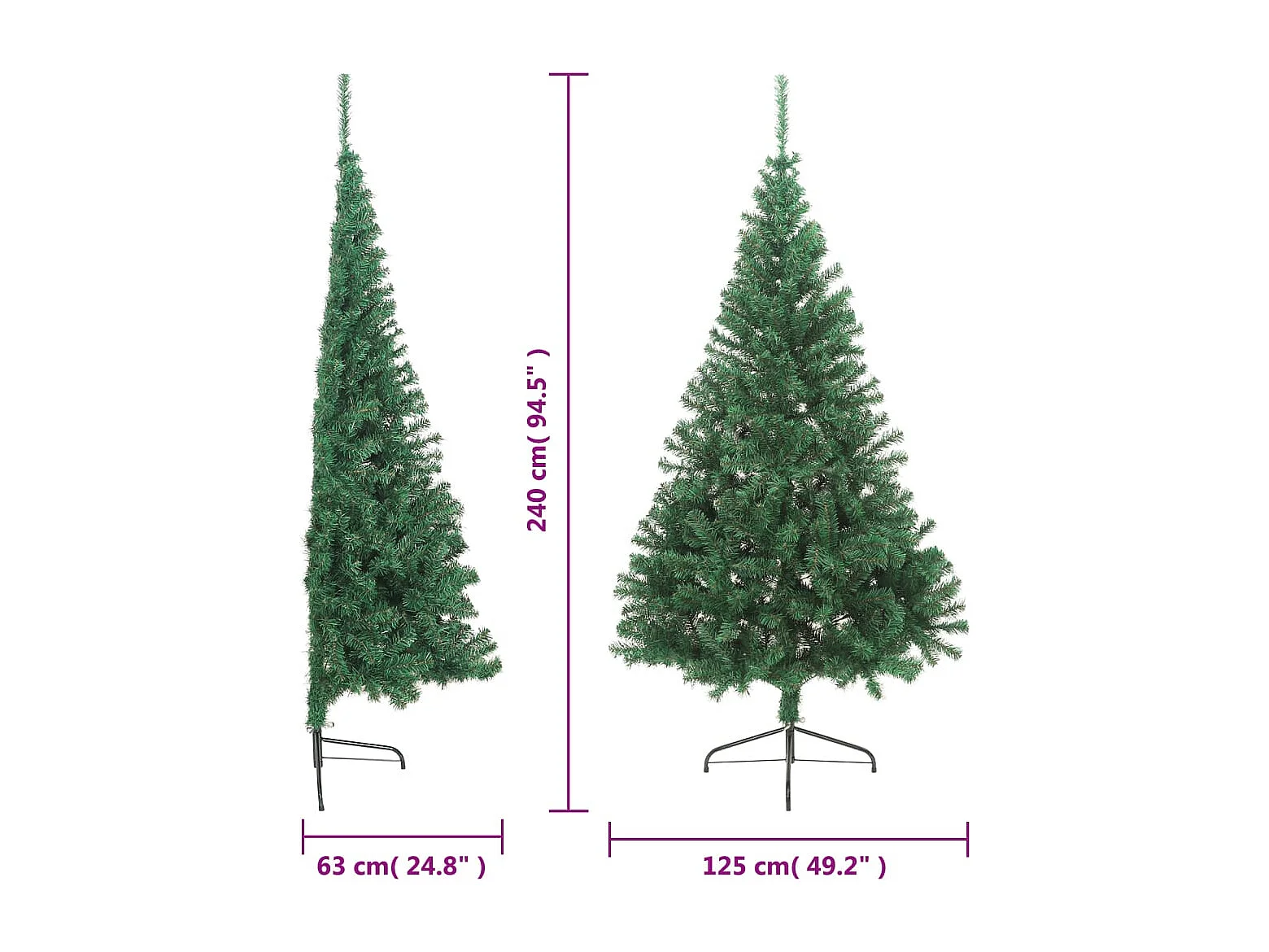 Sapin de Noël artificiel moitié avec support vert 240 cm PVC