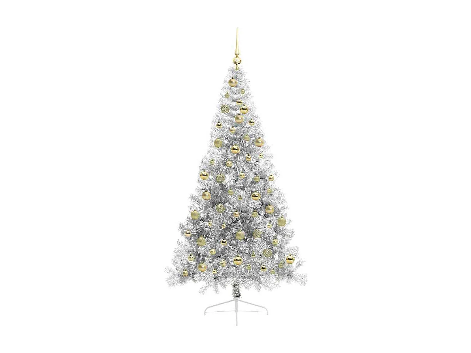 Sapin de Noël artificiel pré-éclairé Argent 210 cm PET