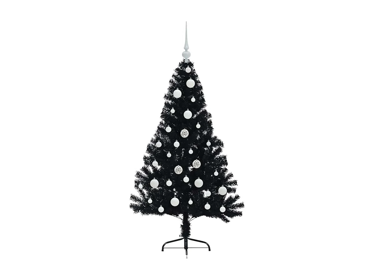Arbre de Noël artificiel pré-éclairé et boules noir 120 cm PVC