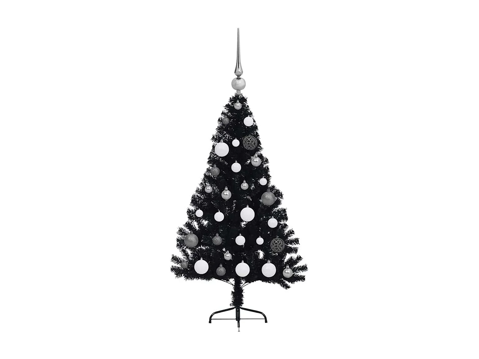 Arbre de Noël artificiel pré-éclairé et boules noir 120 cm PVC