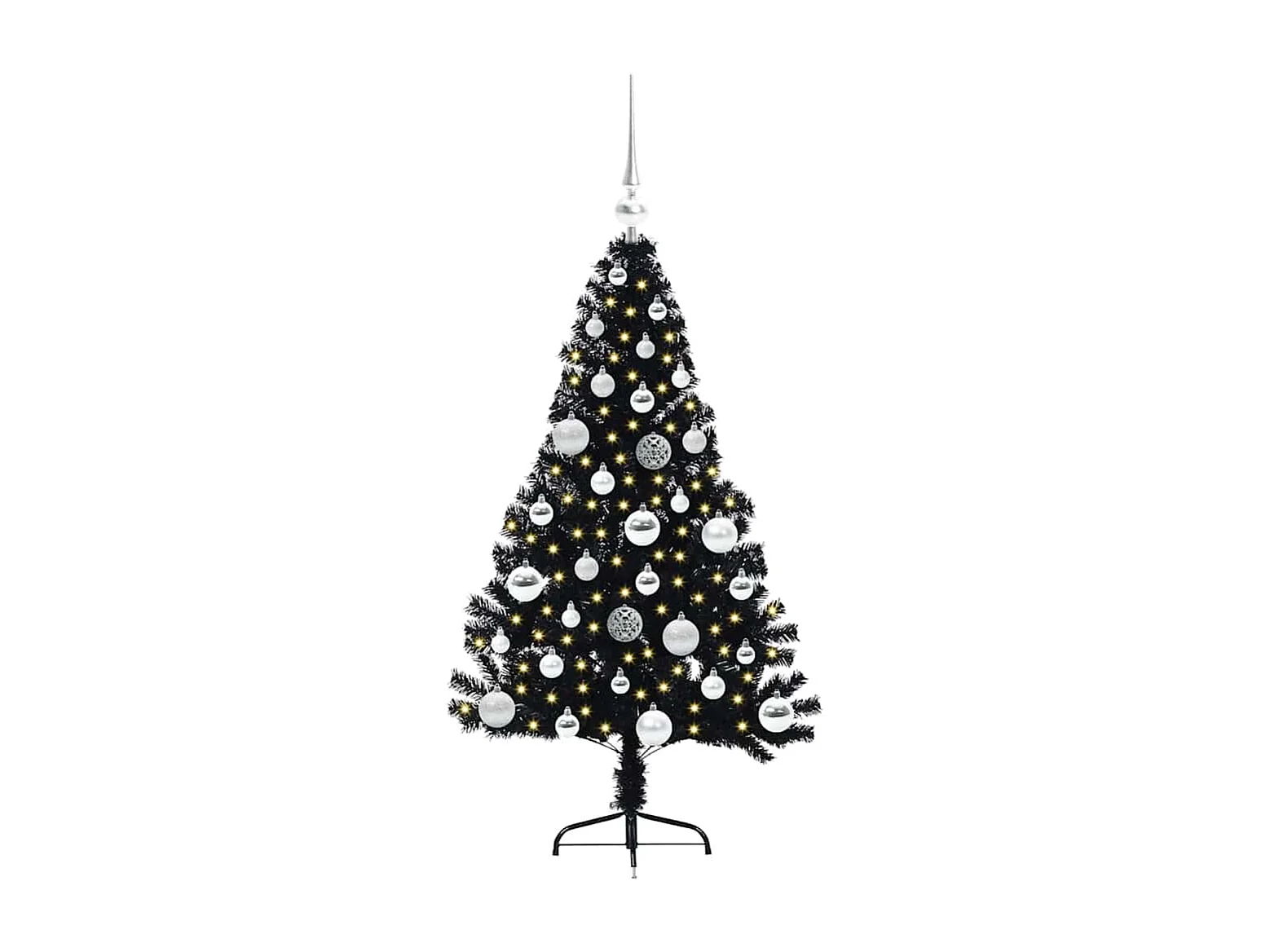 Arbre de Noël artificiel pré-éclairé et boules noir 120 cm PVC
