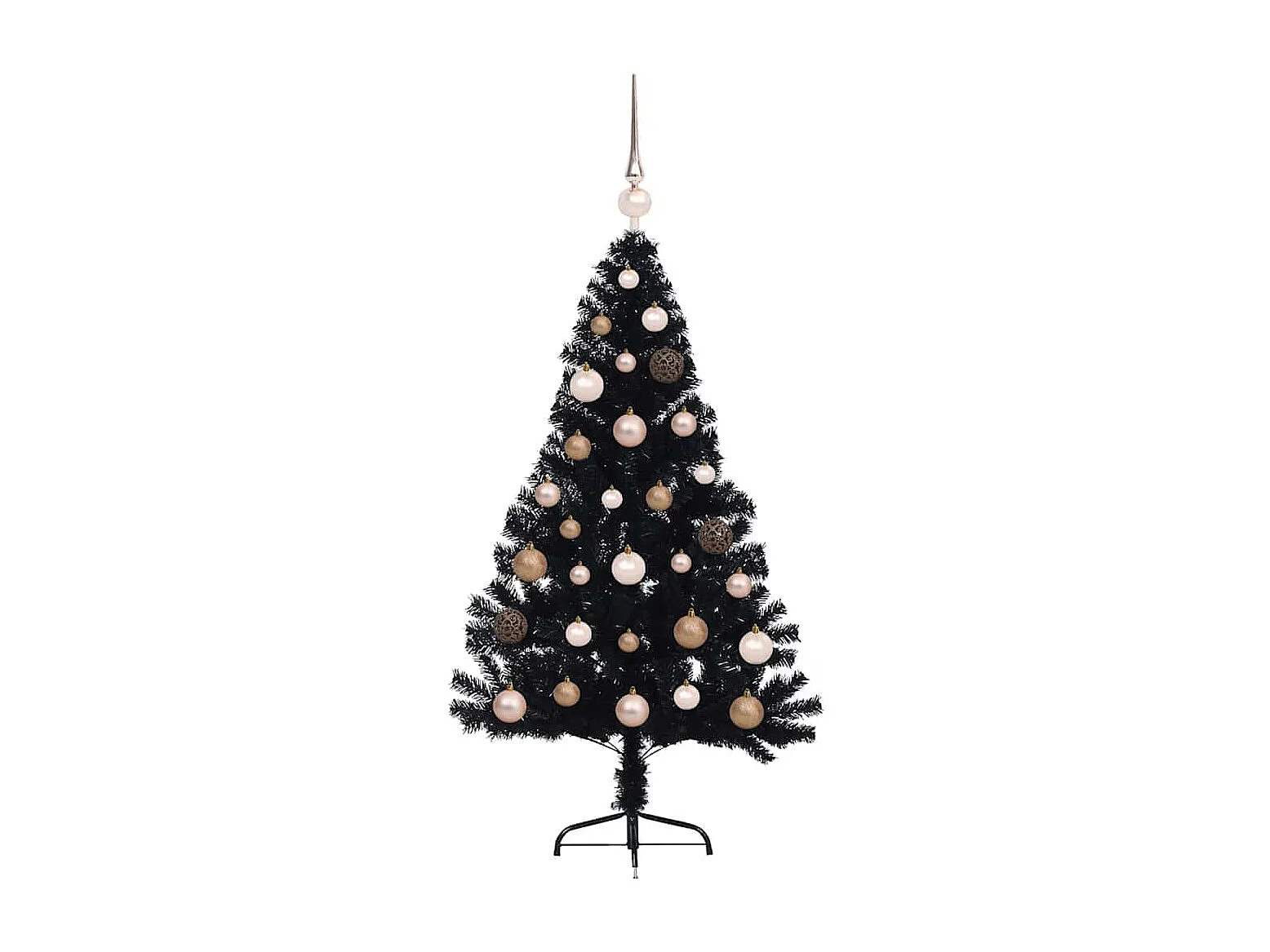 Arbre de Noël artificiel pré-éclairé et boules noir 120 cm PVC
