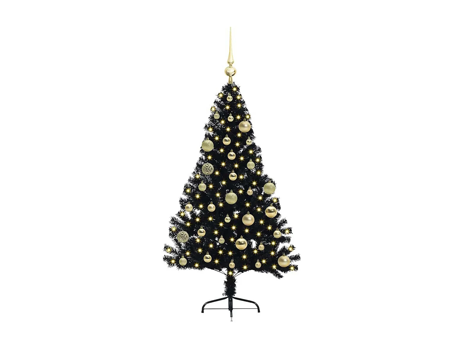 Arbre de Noël artificiel pré-éclairé et boules noir 120 cm PVC