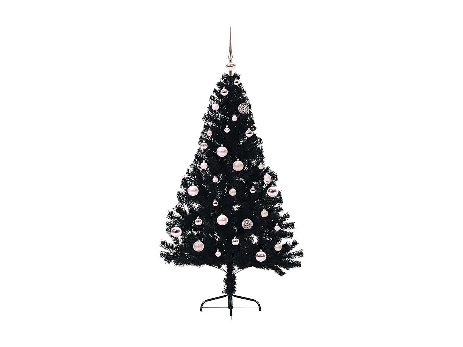 Sapin de Noël artificiel pré-éclairé Noir 150 cm PVC