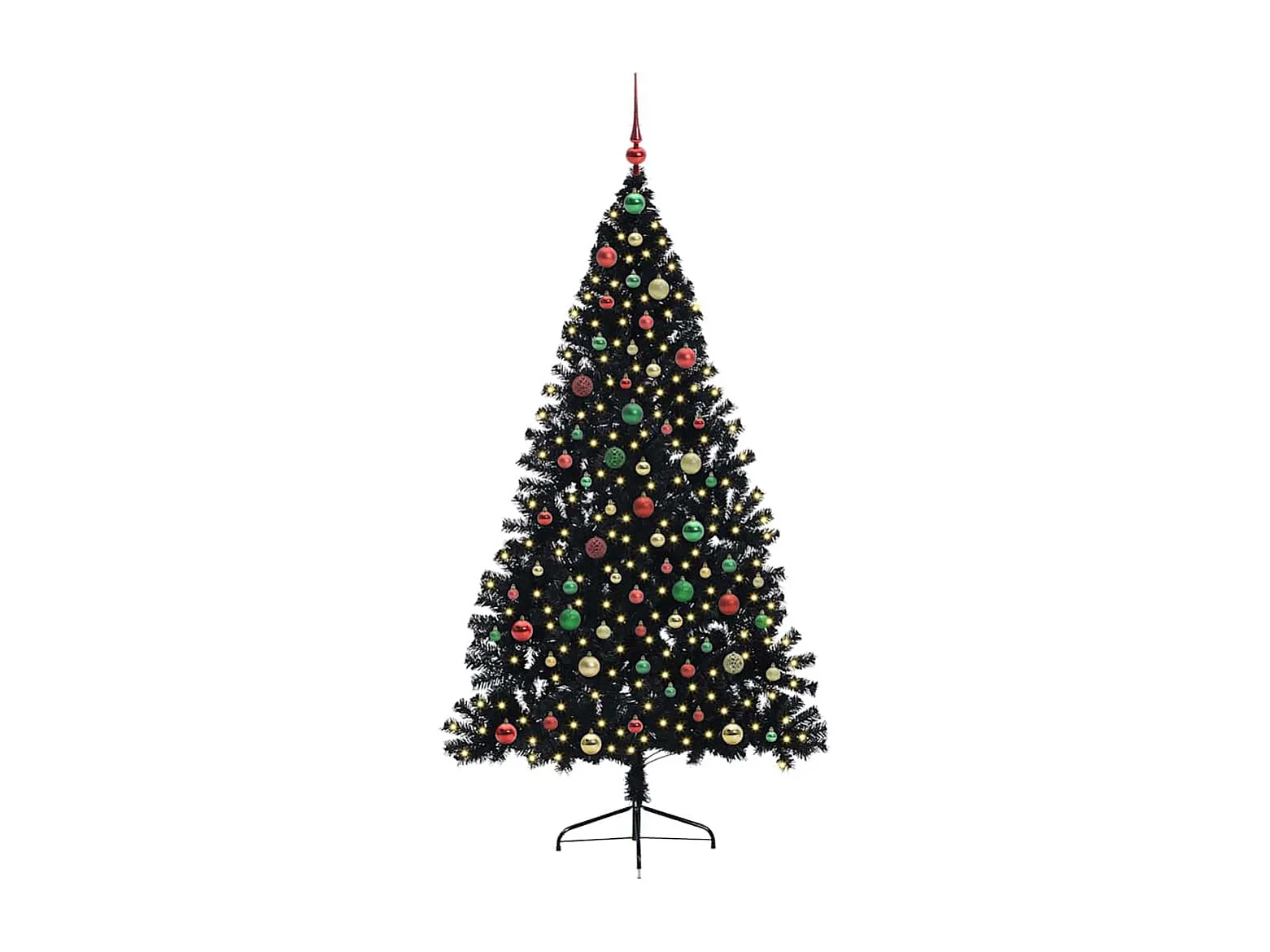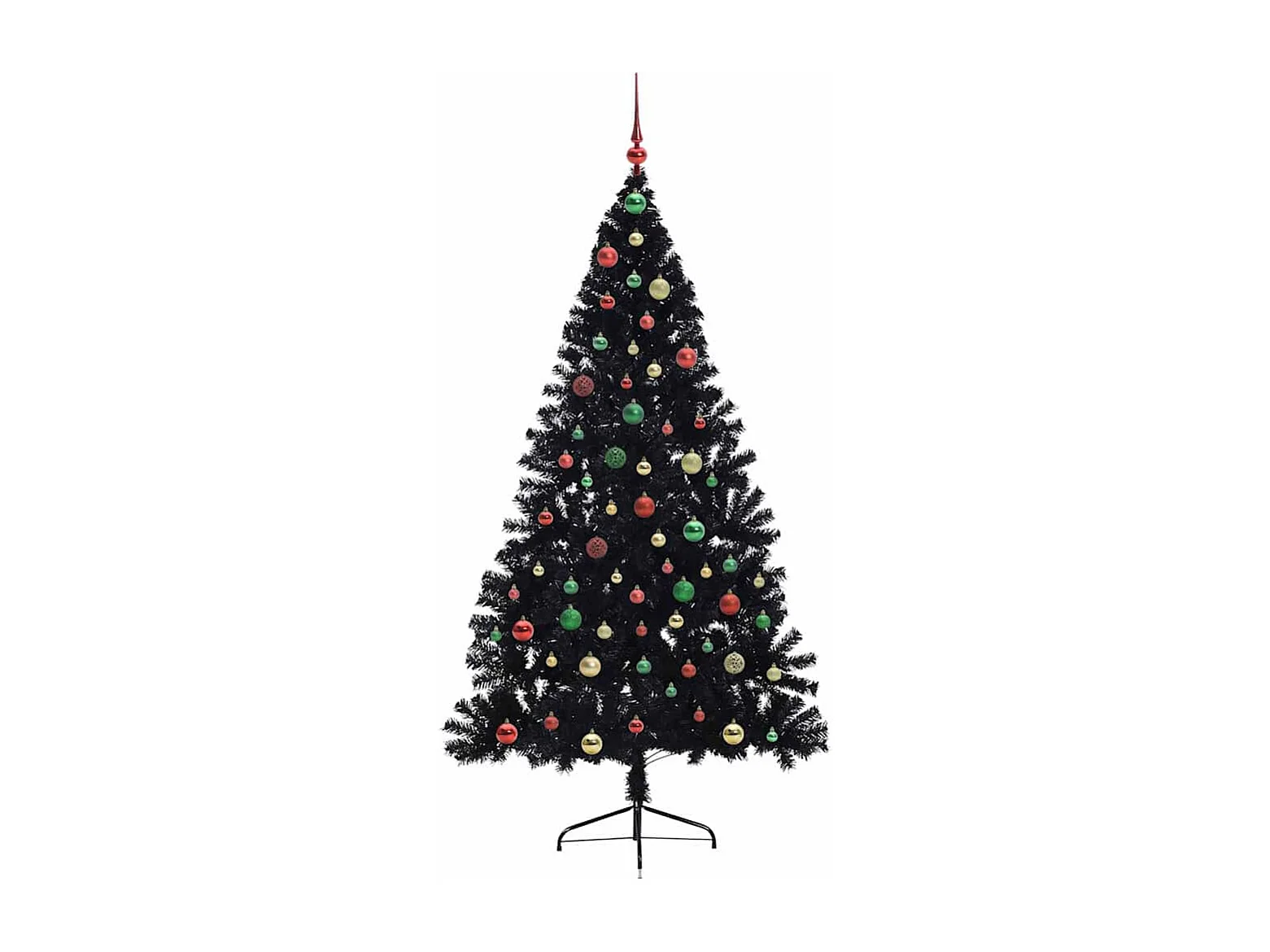 Arbre de Noël artificiel pré-éclairé et boules noir 180 cm PVC