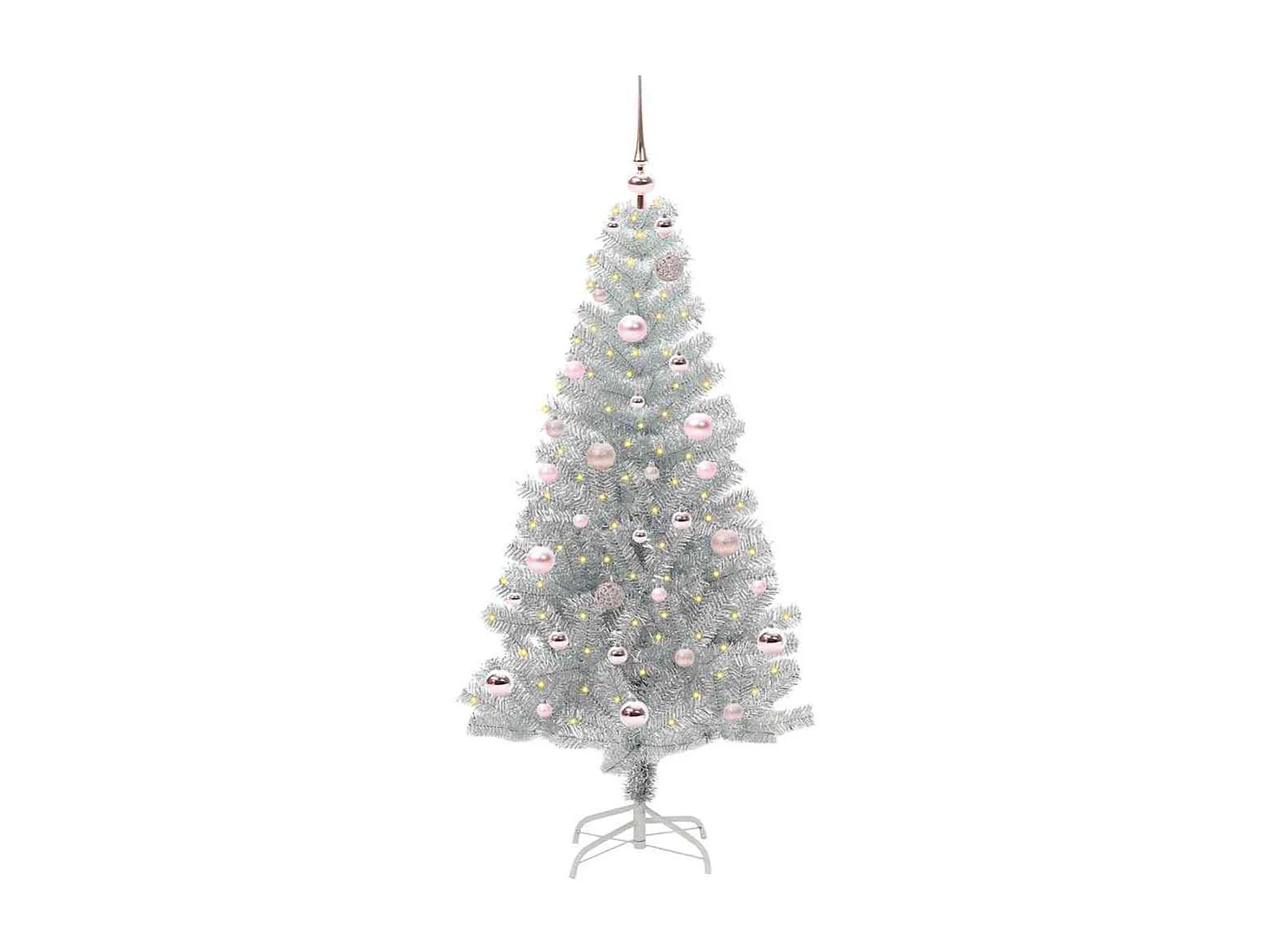 Sapin de Noël artificiel pré-éclairé Argent 150 cm PET