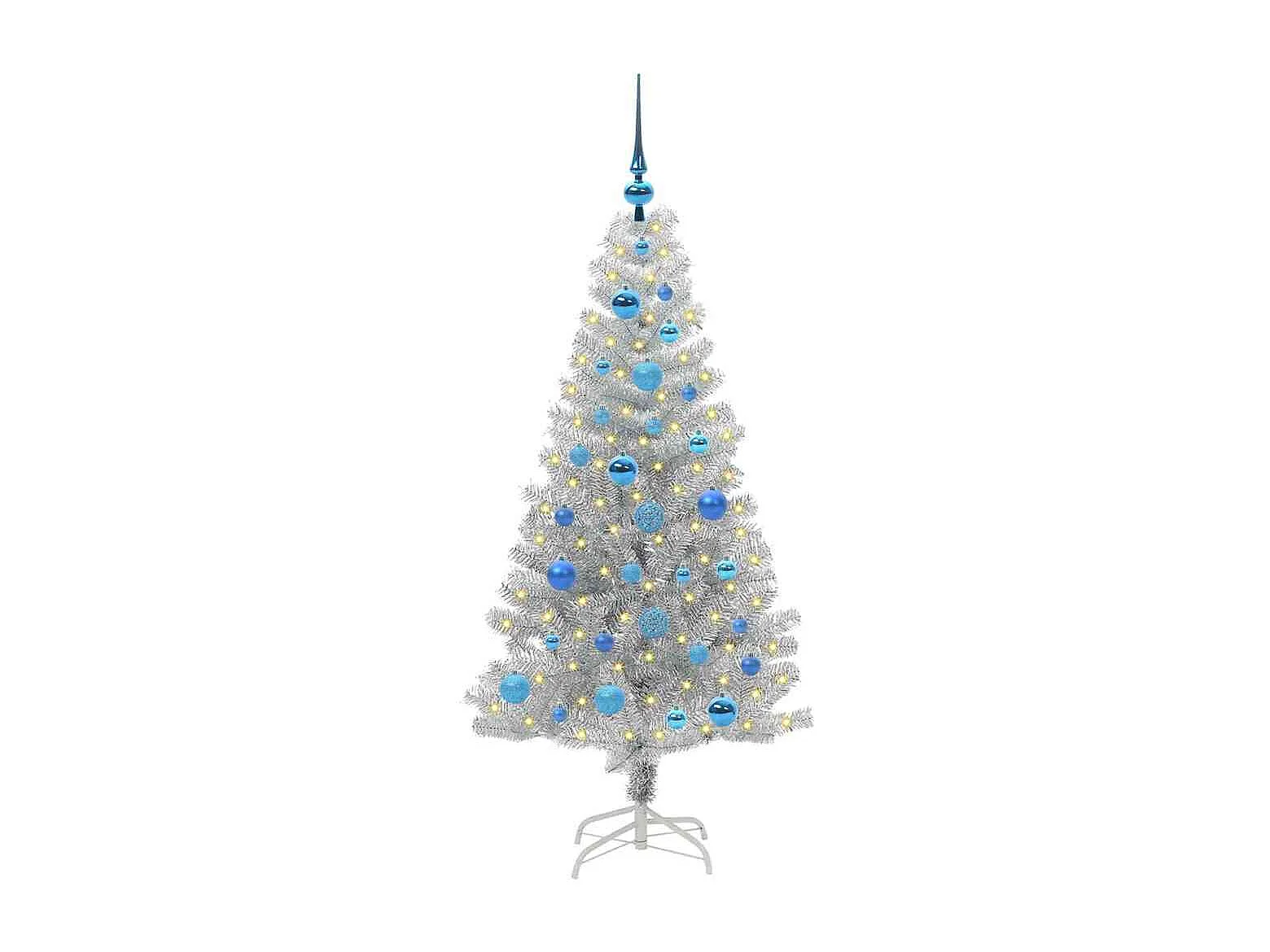 Sapin de Noël artificiel pré-éclairé Argent 150 cm PET