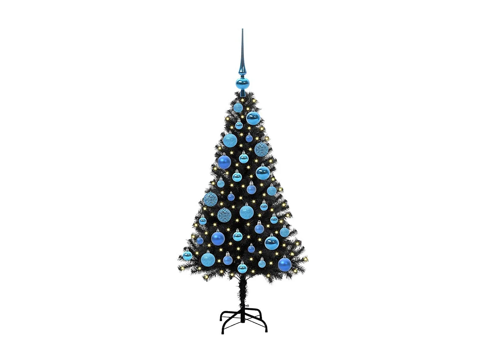 Arbre de Noël artificiel pré-éclairé et boules noir 120 cm PVC