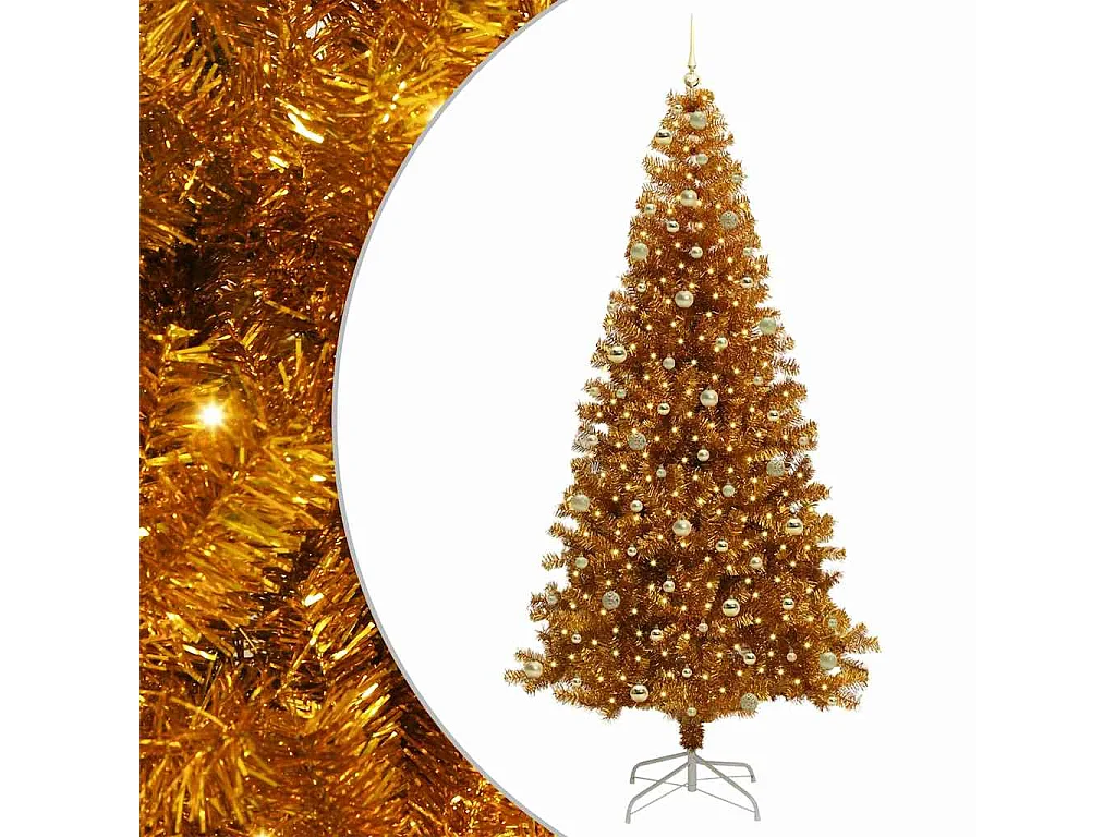 Sapin de Noël avec 300 LED avec support Doré 240 cm PET