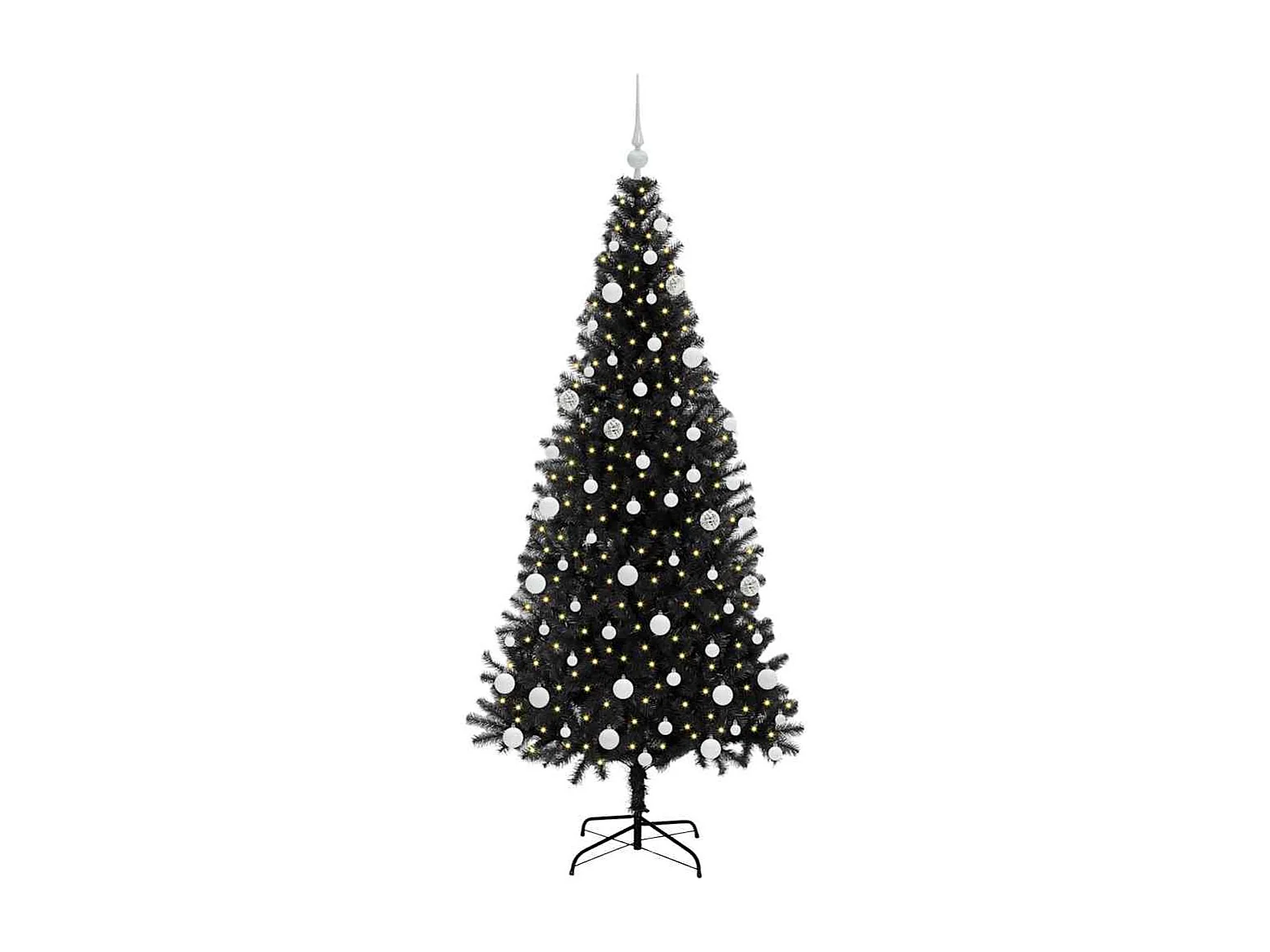 Arbre de Noël artificiel pré-éclairé et boules noir 180 cm PVC