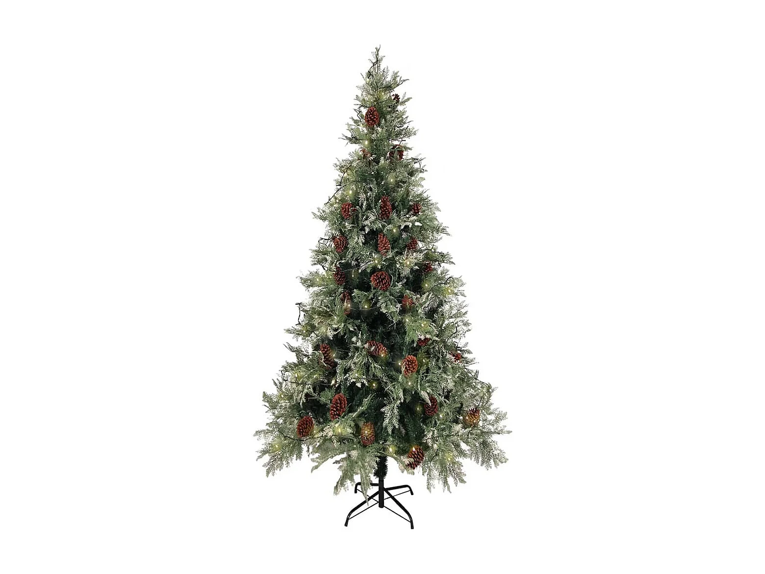 Sapin de Noël pré-éclairé pommes de pin vert blanc 225cm PVC PE