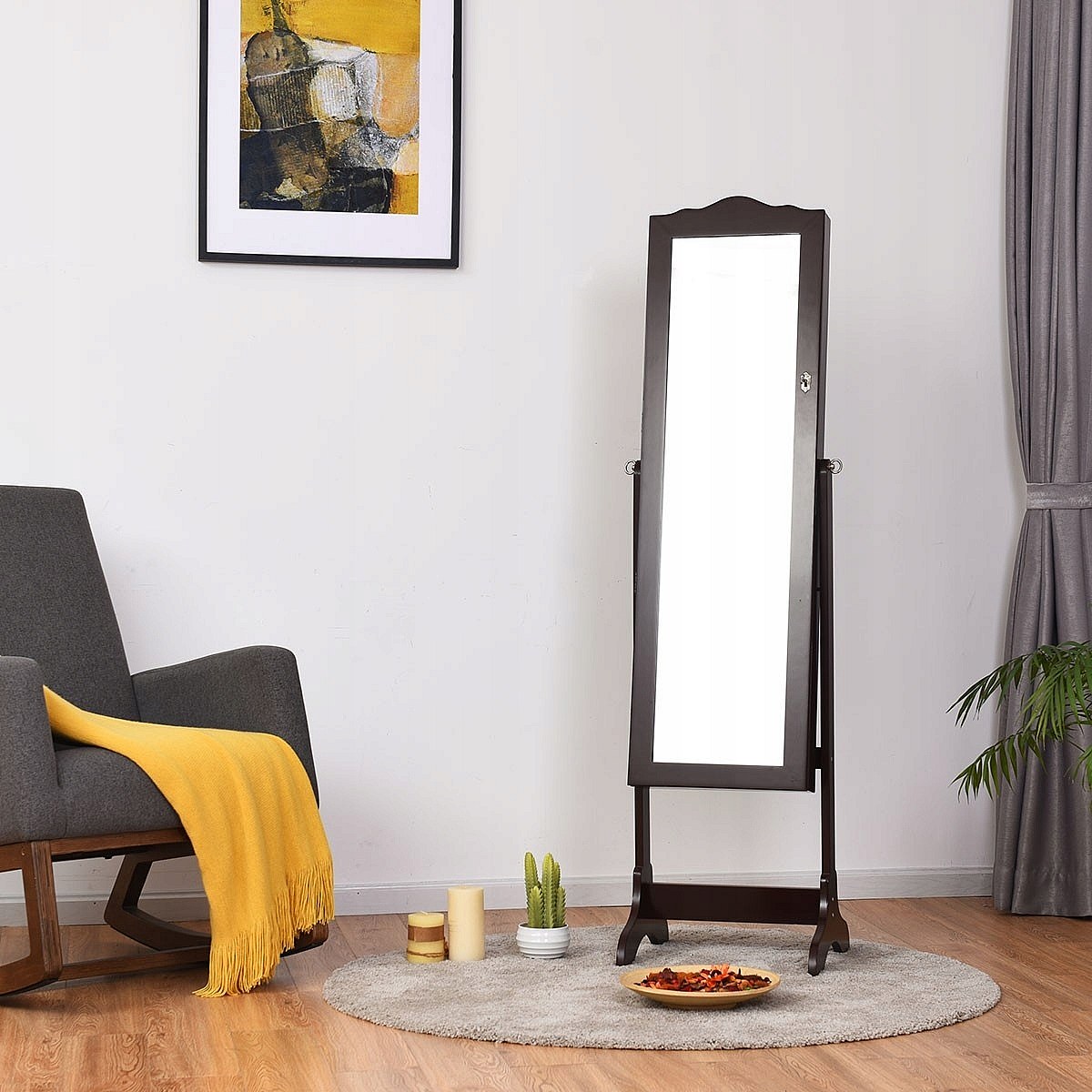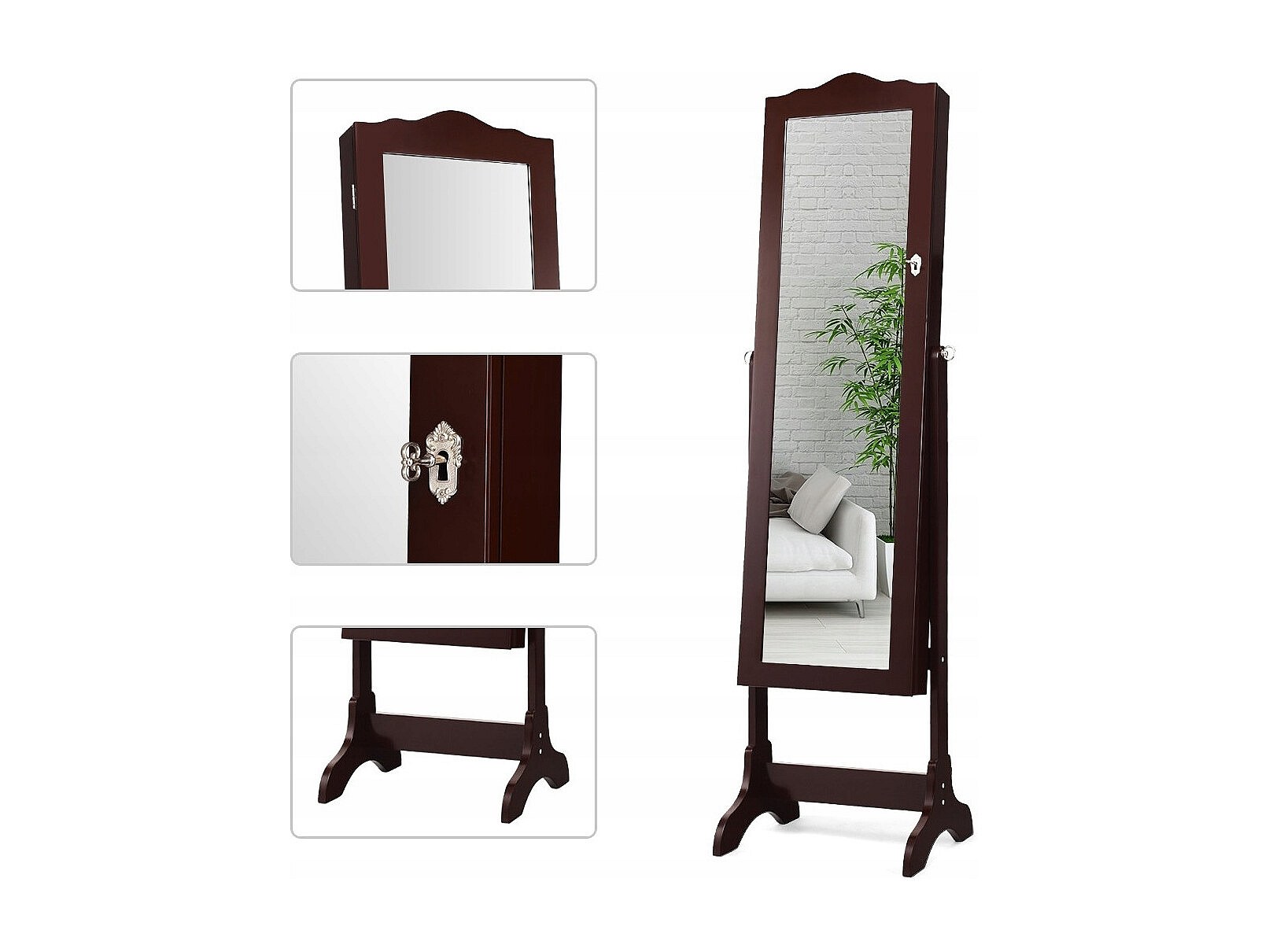 Abschließbarer Schmuckschrank Stehendes Design mit verstellbarem Winkel mit Ganzkörperspiegel 45 x 37 x 160 cm Weiß