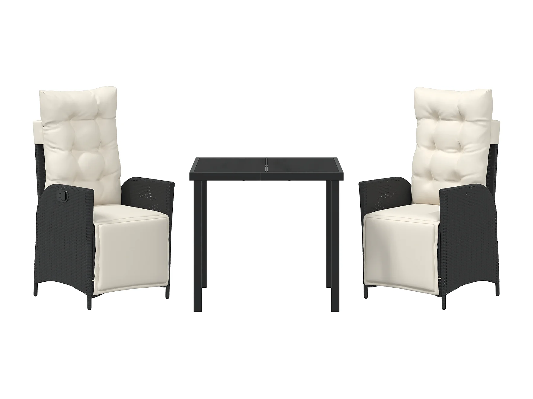 Chaises de Jardin avec Table 3 pcs Noir Bois Massif Acacia