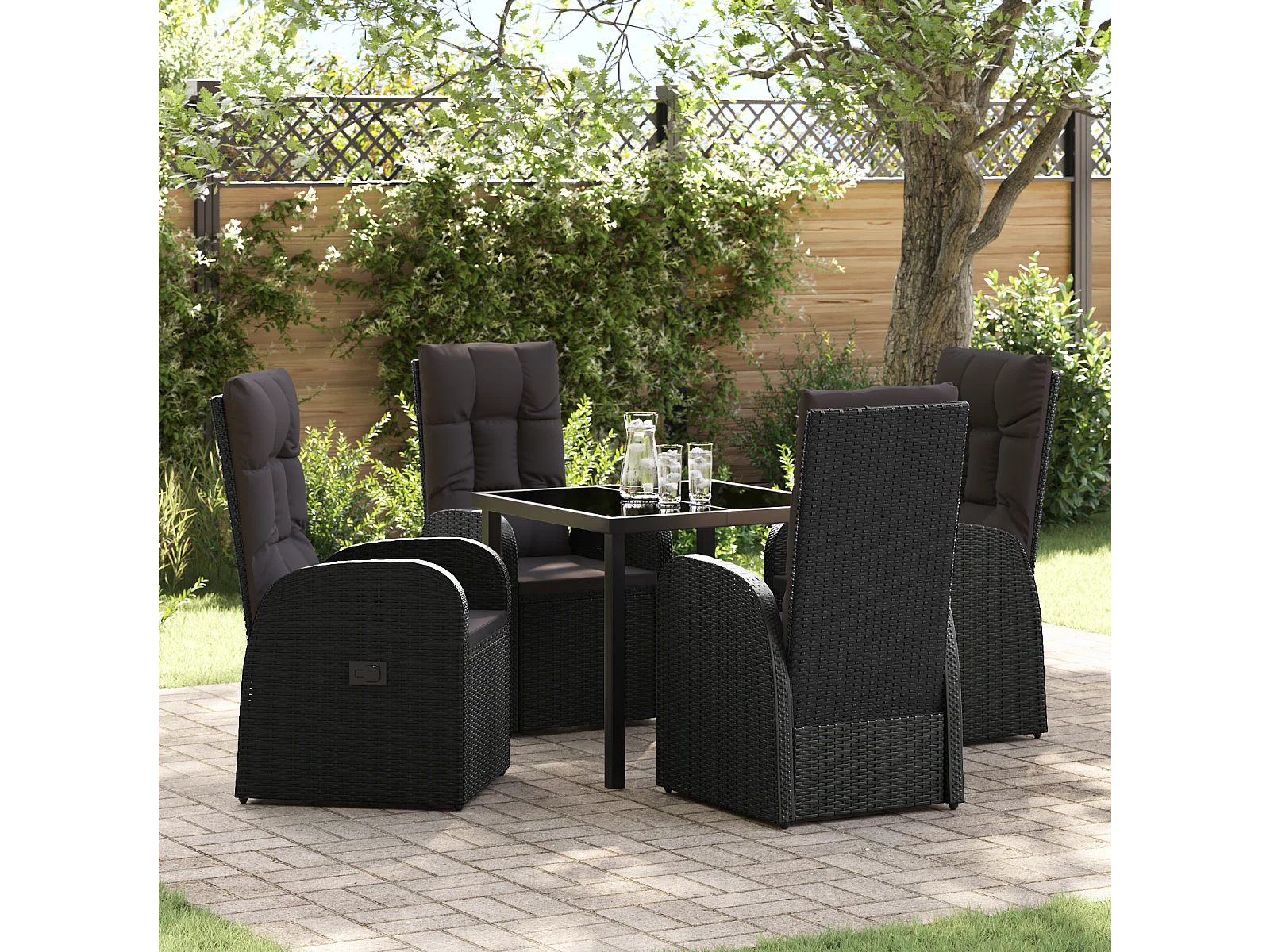 Set de 5 pièces pour repas de jardin avec coussins - Rattan poly noir