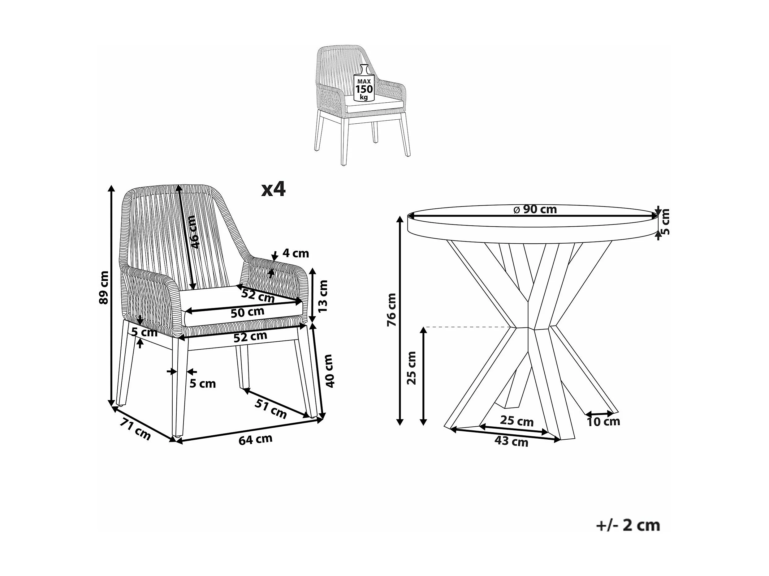 Salle à manger de jardin 4 places LIPARI avec coussins Métal Gris