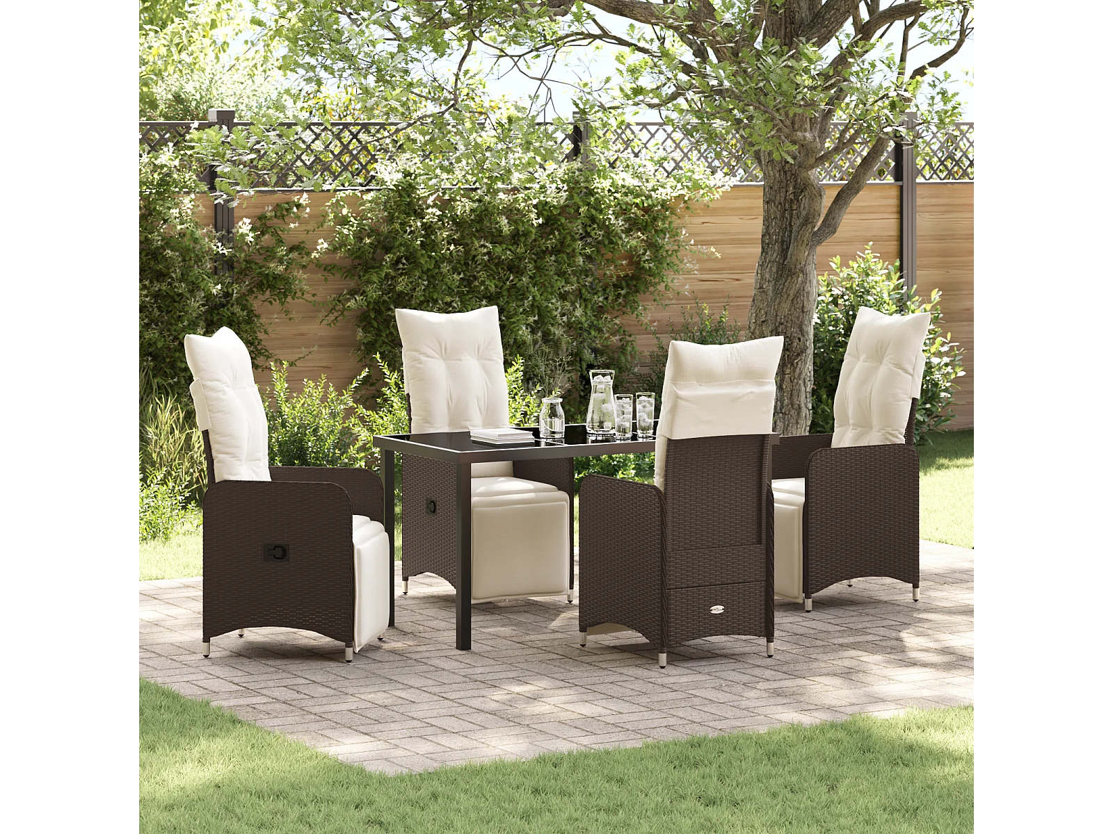 Ensemble de repas de jardin 5 pièces marron rattan synthétique