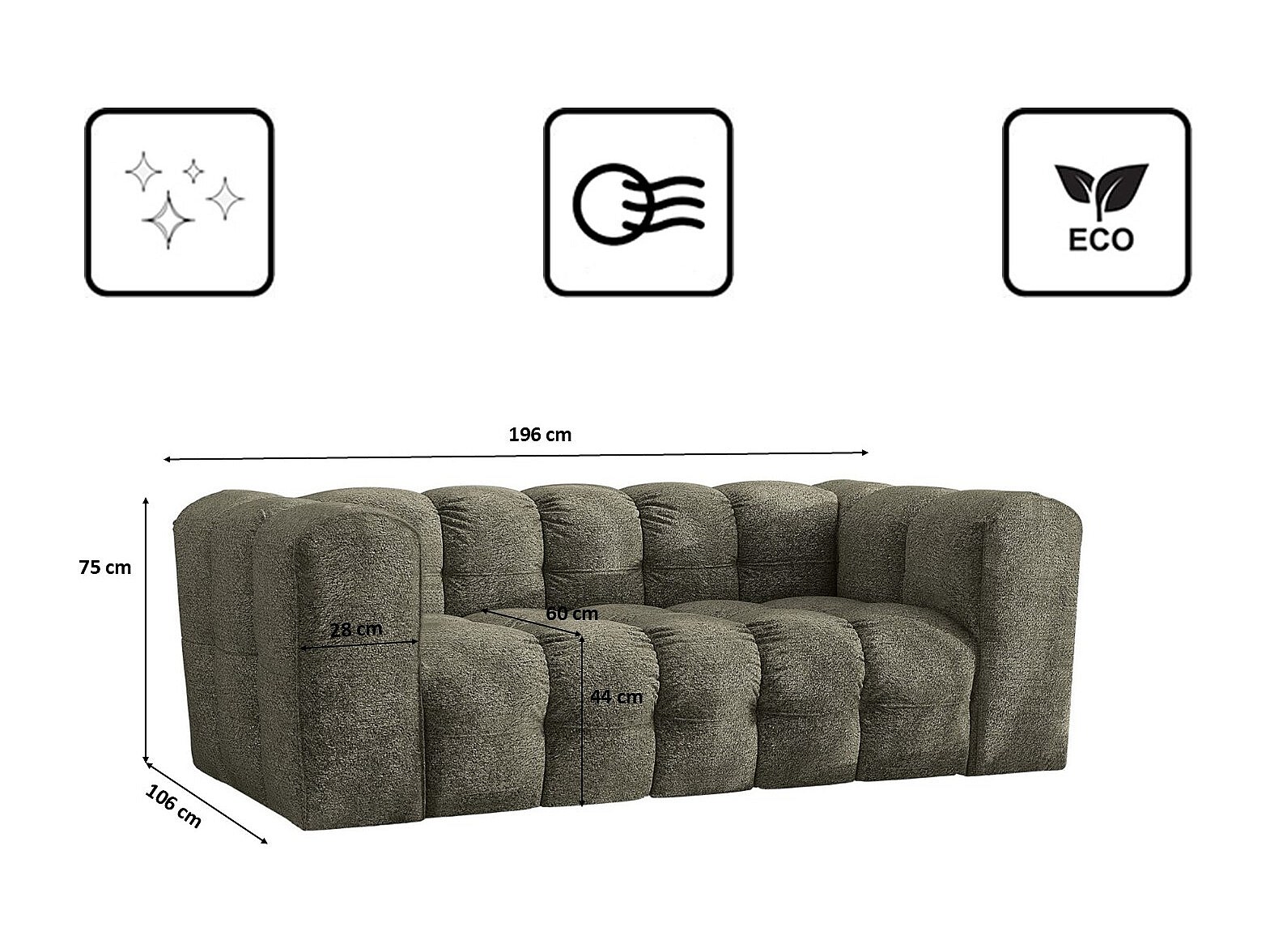 Sofa 2-Sitzer, Komfort Couch BALOO, stoff Schenille & Bouclé, Grün