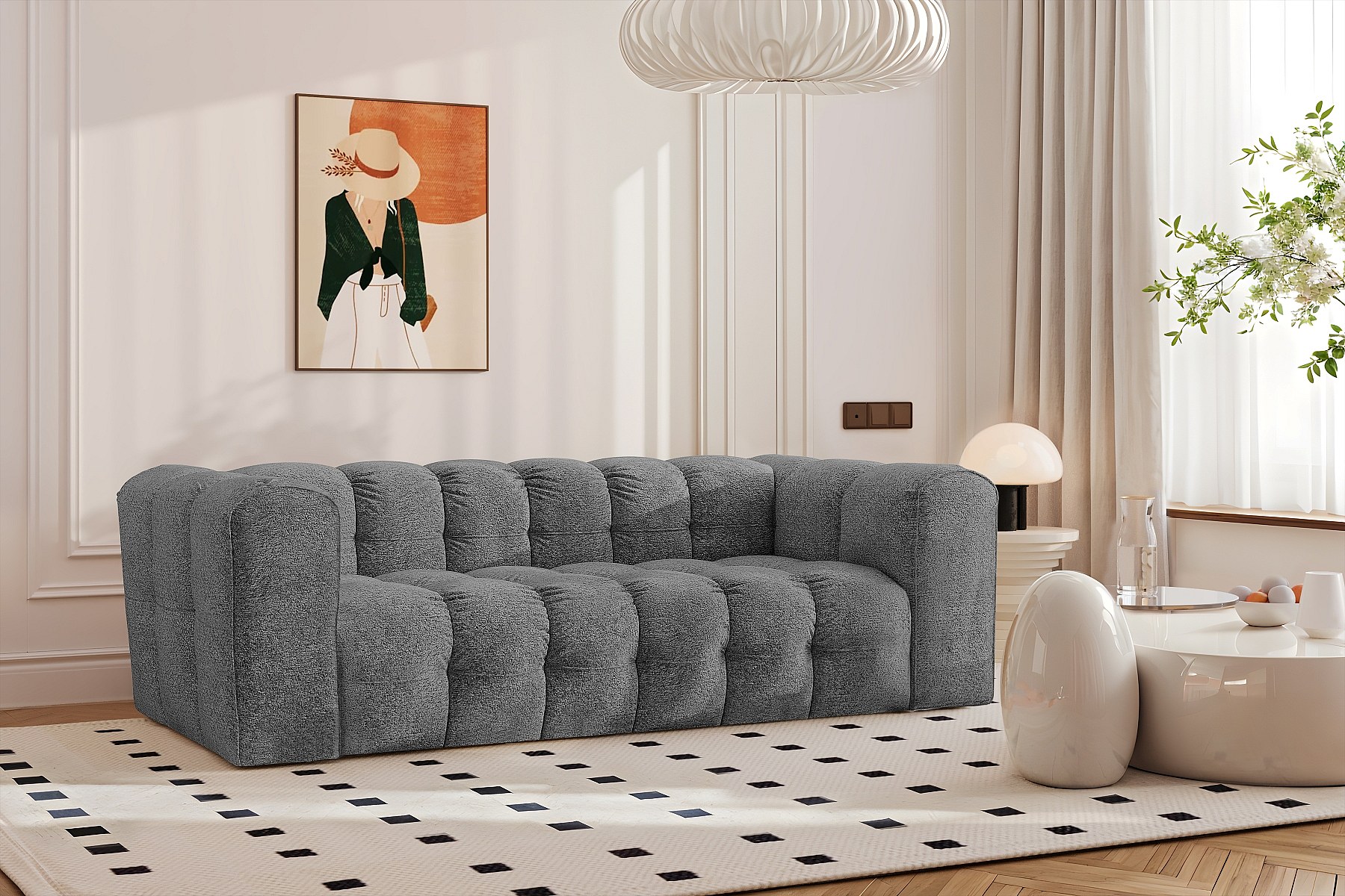 Sofa 3-Sitzer, Komfort Couch BALOO, stoff Schenille & Bouclé, Anthrazit