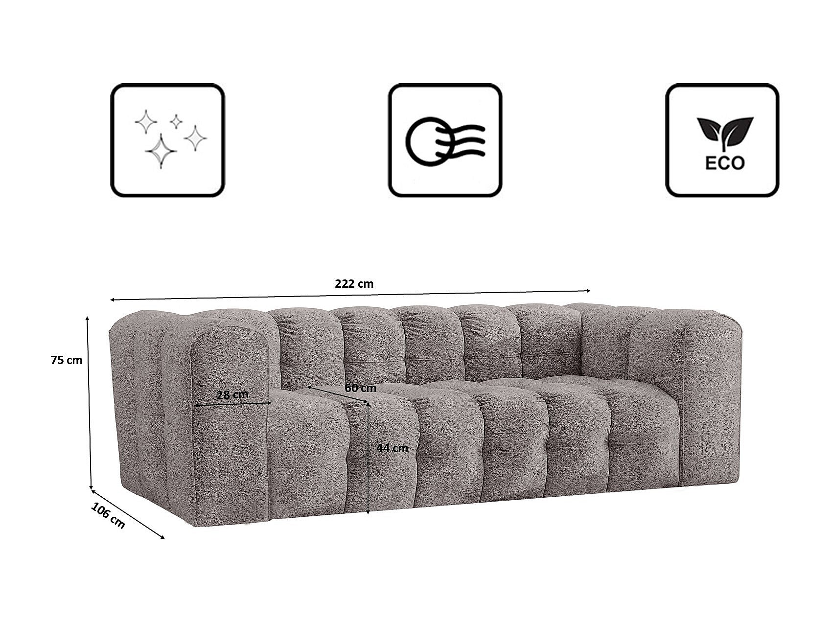 Sofa 3-Sitzer, Komfort Couch BALOO, stoff Schenille & Bouclé, Grau