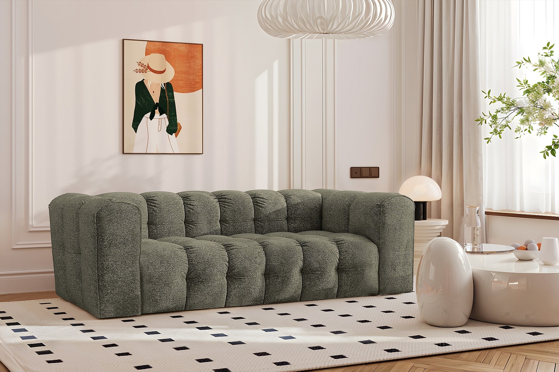 Sofa 3-Sitzer, Komfort Couch BALOO, stoff Schenille & Bouclé, Grün