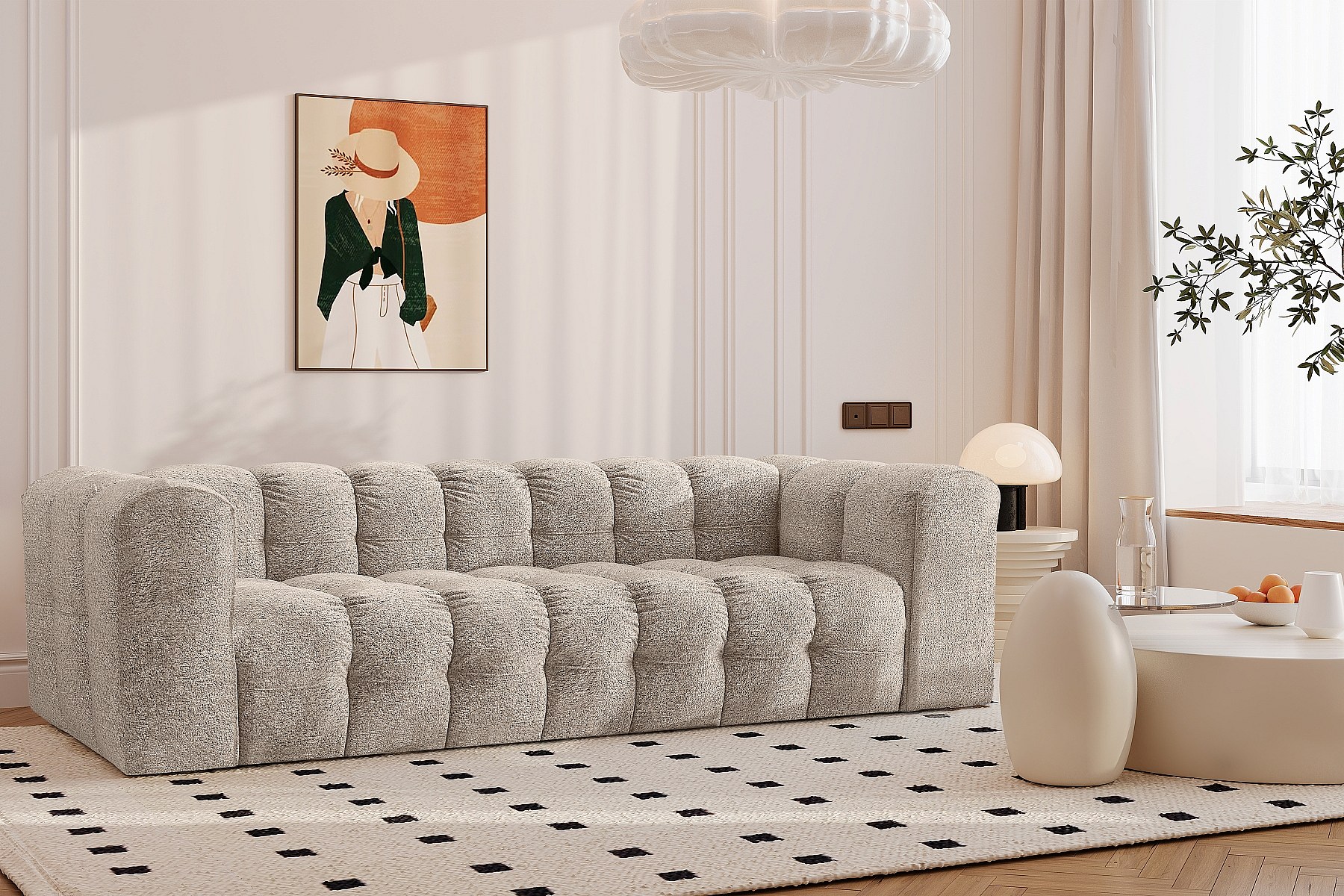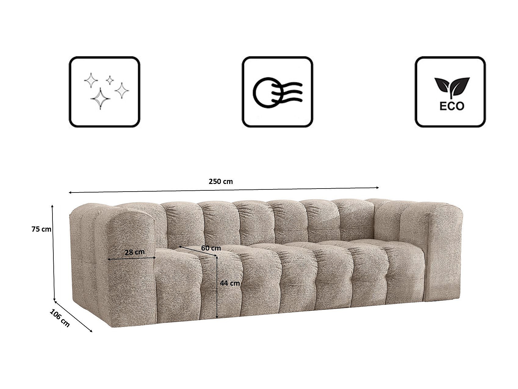 Sofa 4-Sitzer, Komfort Couch BALOO, stoff Schenille & Bouclé, Beige