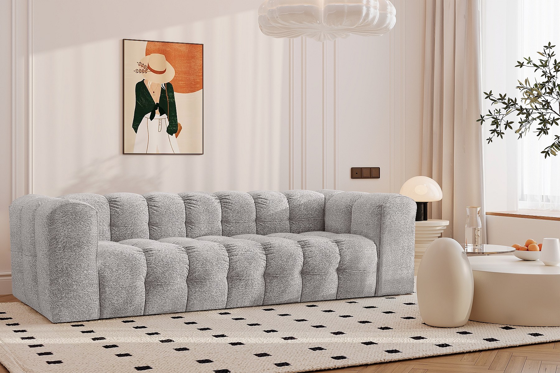 Sofa 4-Sitzer, Komfort Couch BALOO, stoff Schenille & Bouclé, Hellgrau