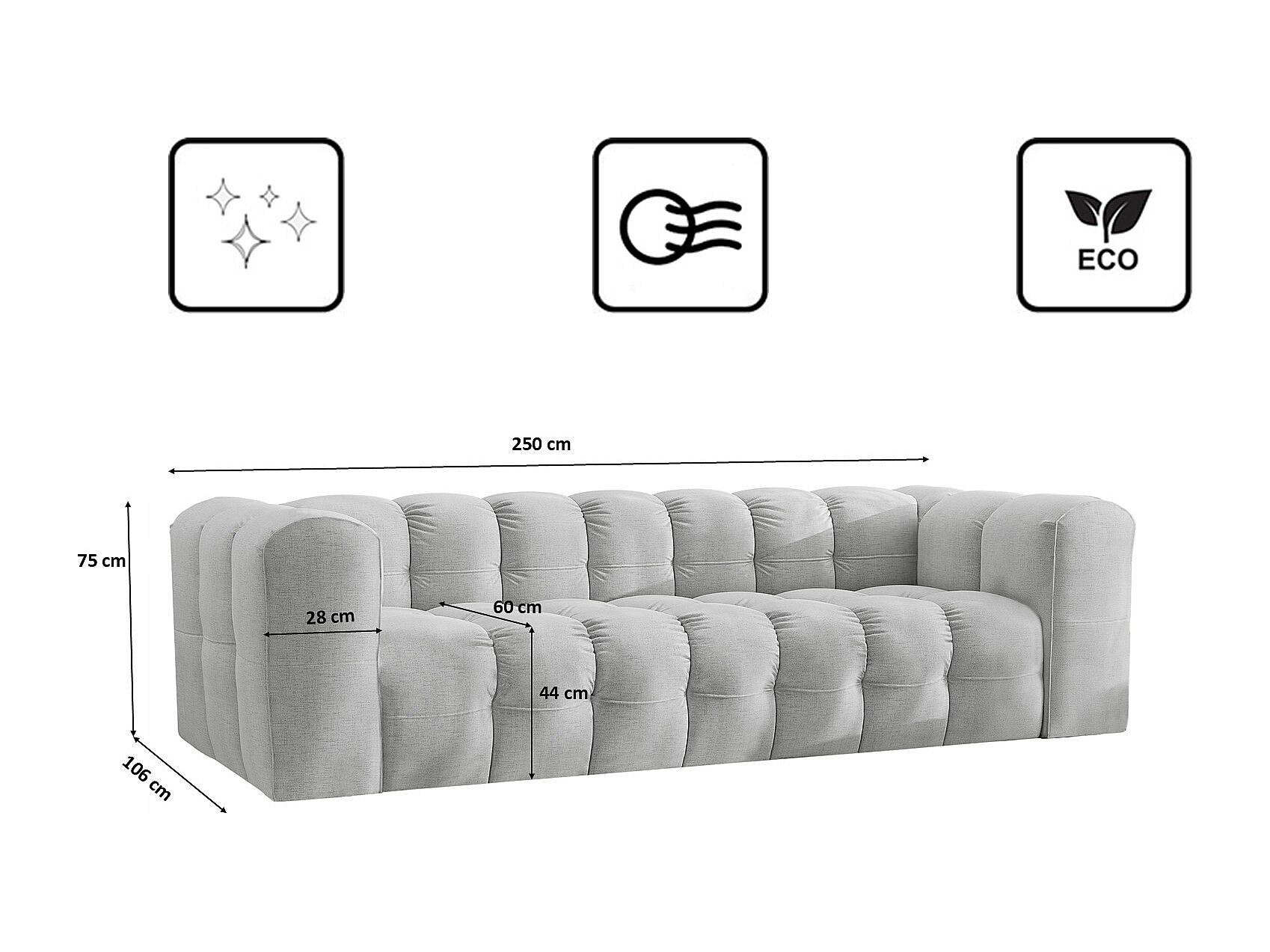Sofa 4-Sitzer, Komfort Couch BALOO, stoff Schenille, Hellgrau