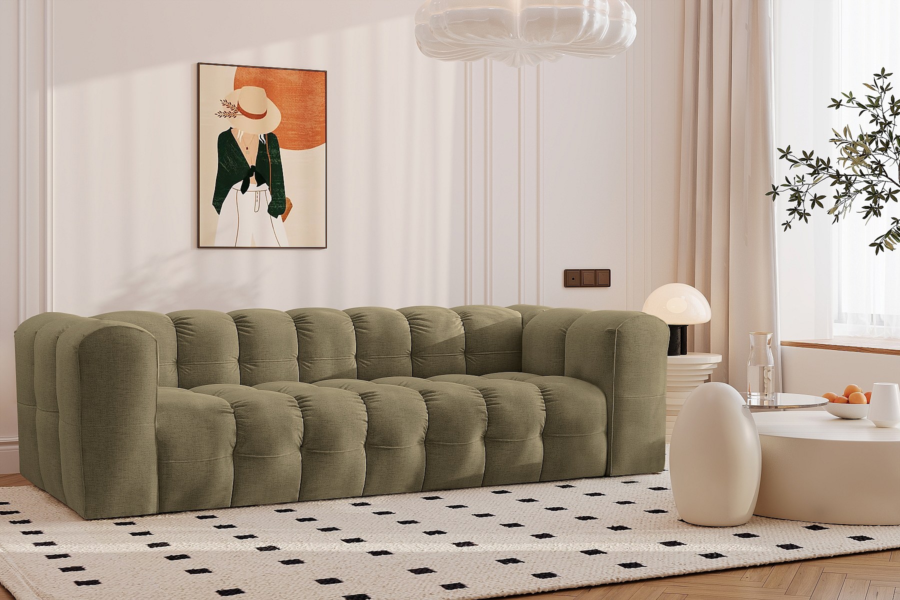 Sofa 4-Sitzer, Komfort Couch BALOO, stoff Schenille, Olive
