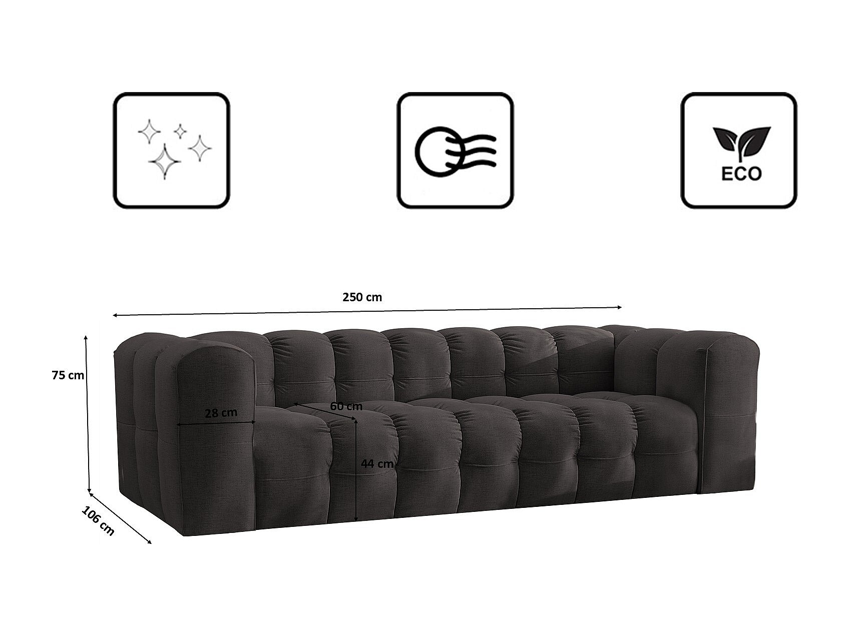 Sofa 4-Sitzer, Komfort Couch BALOO, stoff Schenille, Schwarz