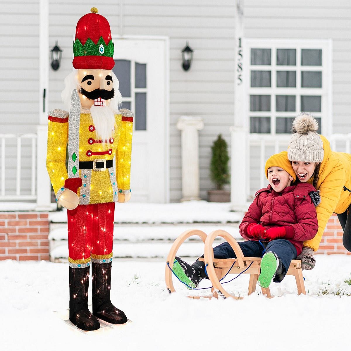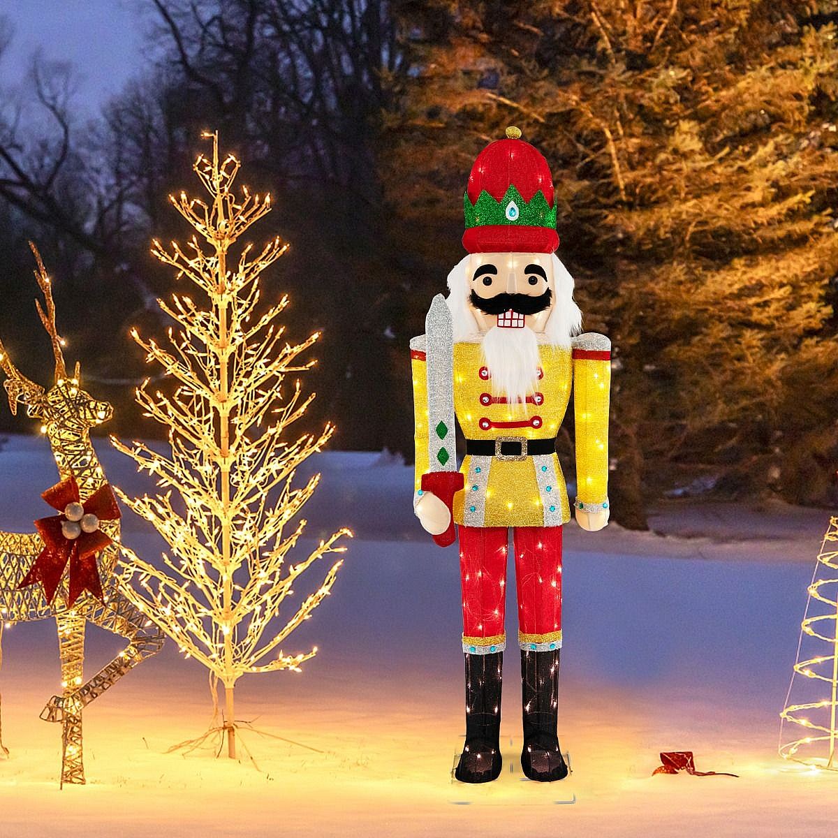 Soldat Casse-Noisettes de Noël Lumineux Figurine Grandeur Nature de 166 cm de Hauteur avec Socle en Métal Lumières LED