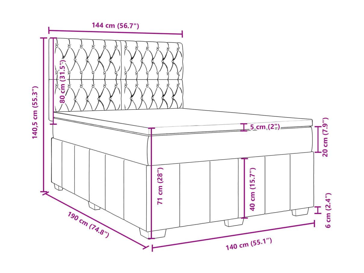 Sommier à lattes de lit avec matelas Gris foncé 140x190cm Tissu
