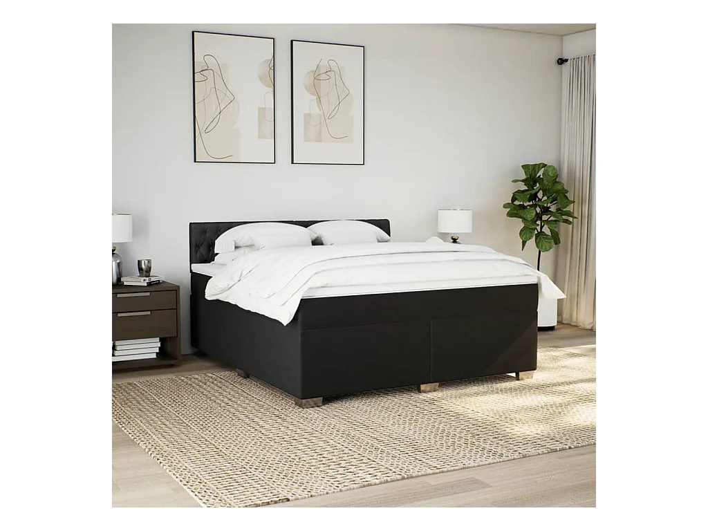 Sommier à lattes de lit avec matelas Noir 180x200 cm Tissu