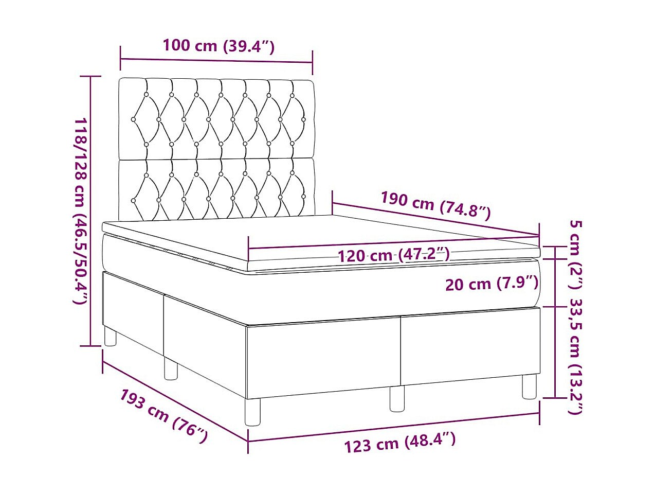 Sommier à lattes de lit et matelas LED rose 120x190 cm velours