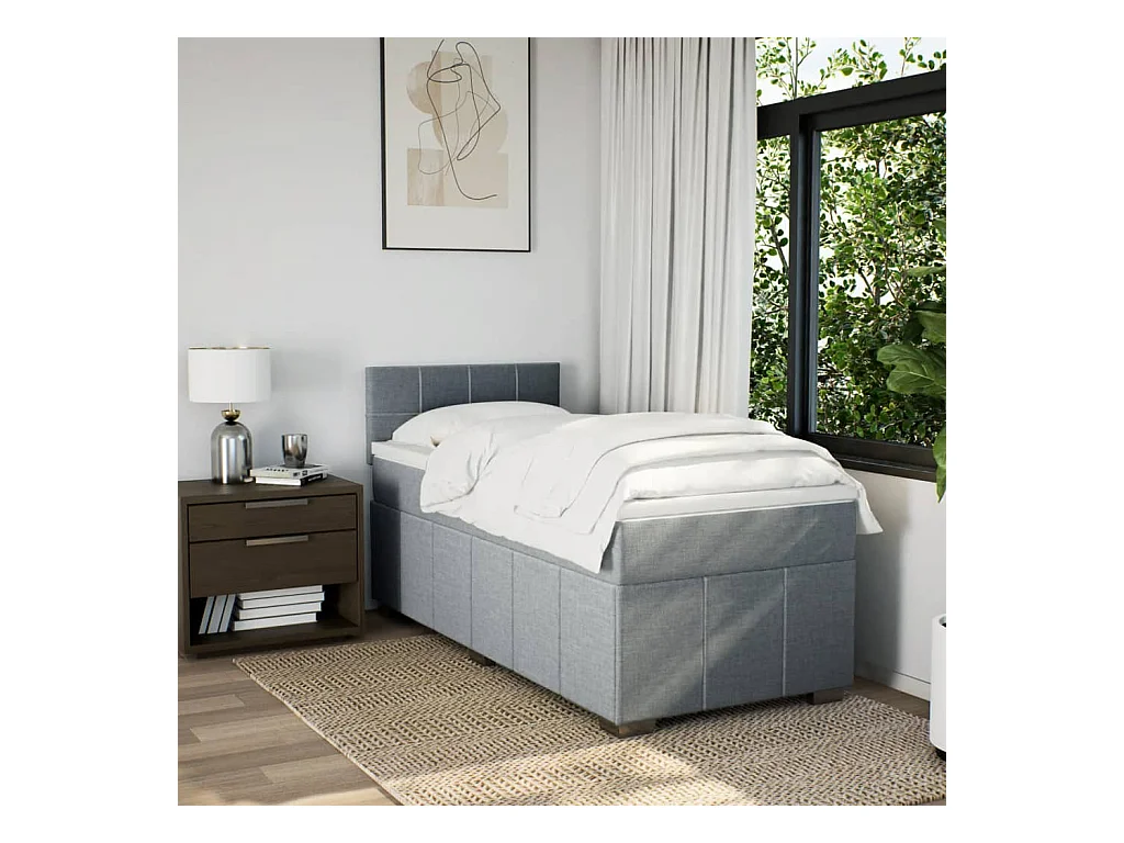 Sommier à lattes de lit et matelas Gris clair 90x190 cm Tissu