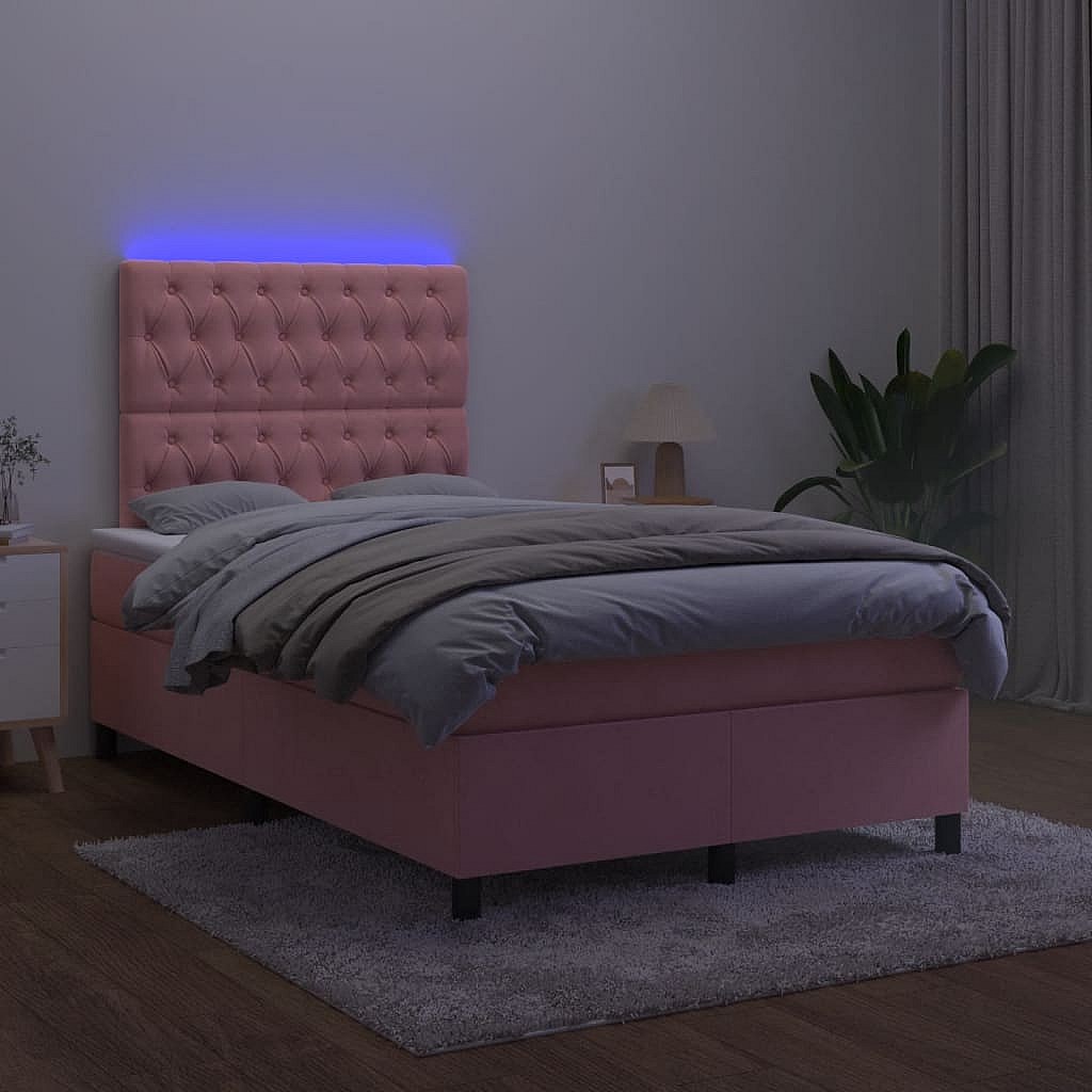 Sommier à lattes de lit et matelas LED rose 120x190 cm velours