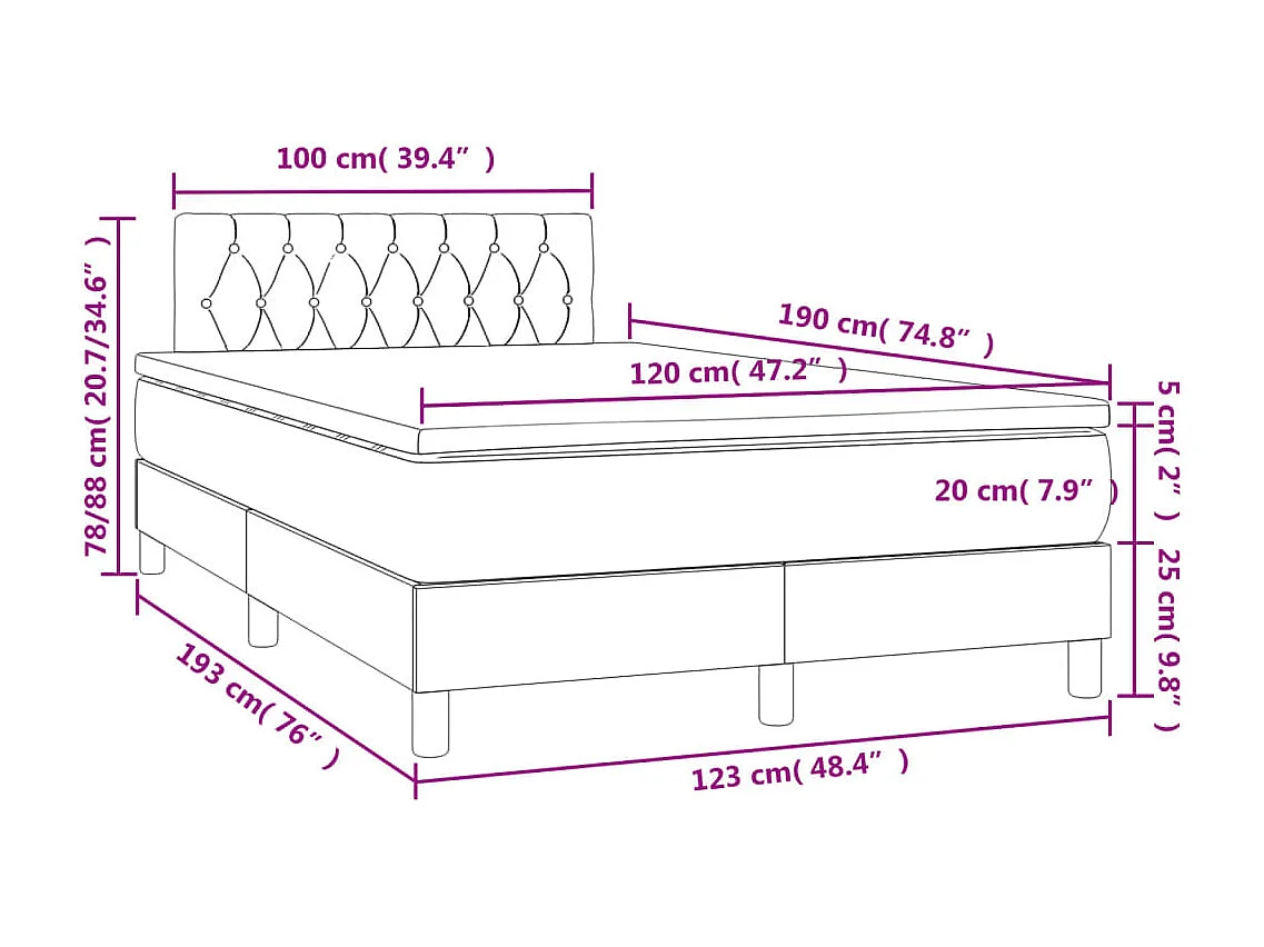 Sommier à lattes de lit et matelas LED rose 120x190 cm velours