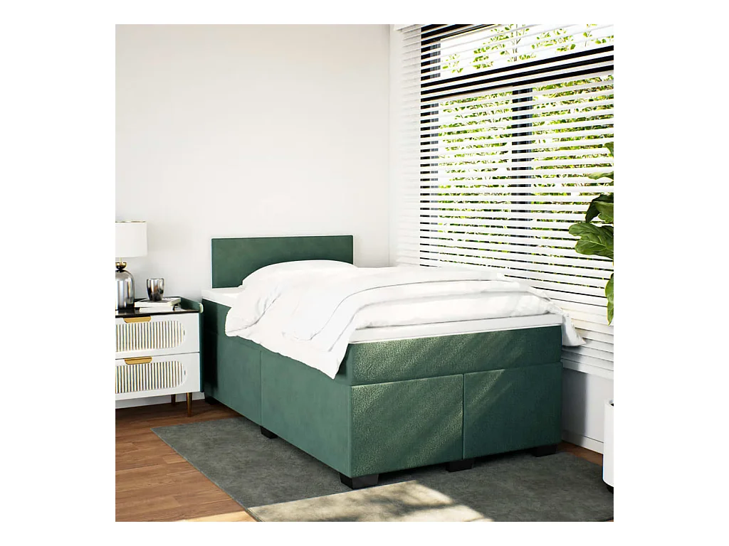 Sommier à lattes de lit et matelas Vert foncé 120x200cm Velours