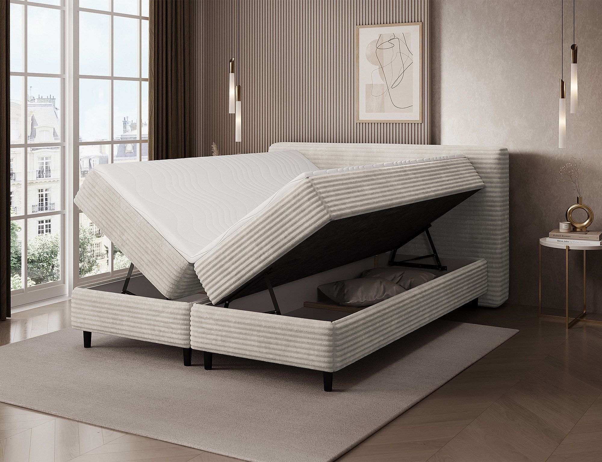 Sommier à ressorts Magnolia/sommier tapissier/housse en tissu peluche/Creme