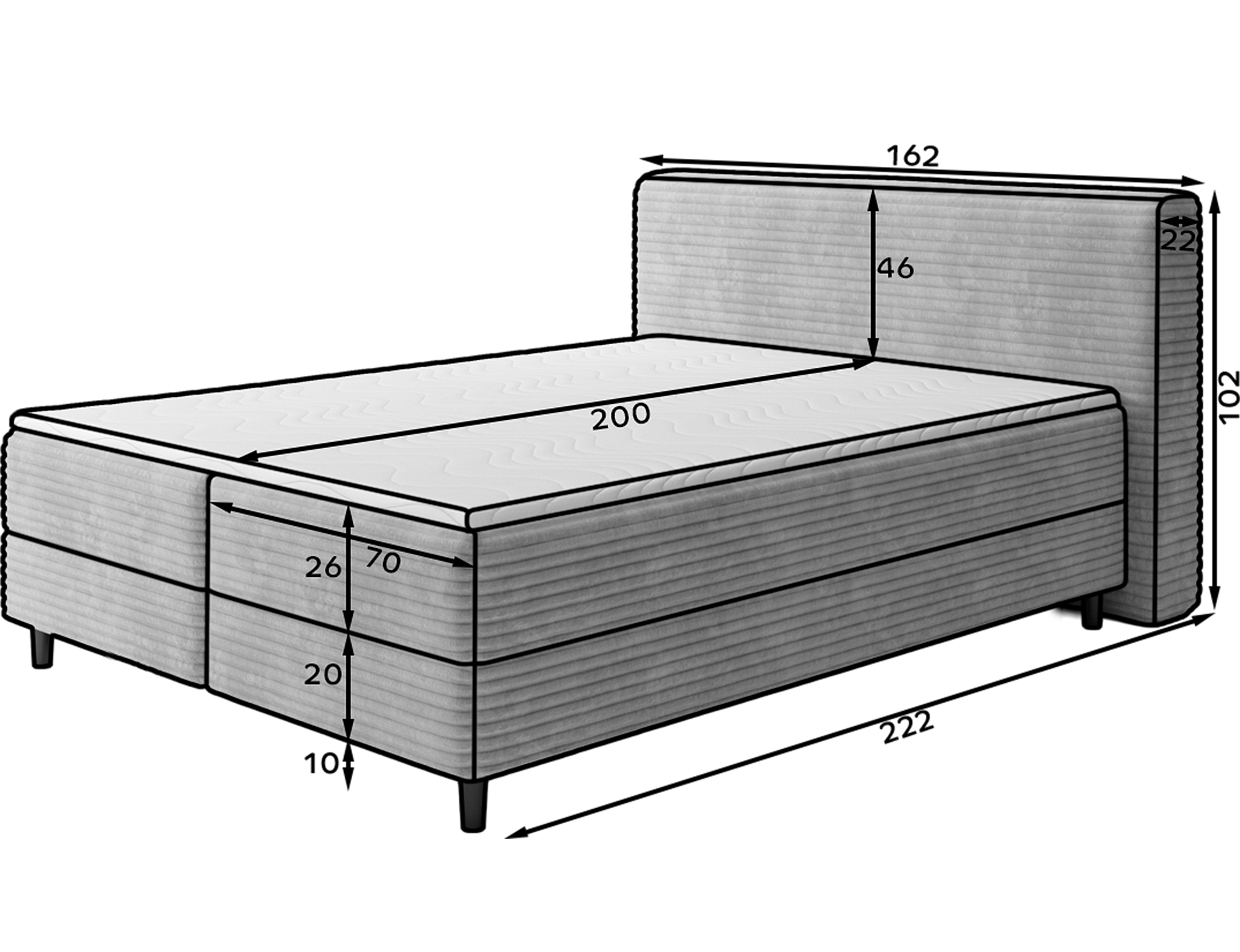 Sommier à ressorts Magnolia/sommier tapissier/housse en tissu peluche/Noir